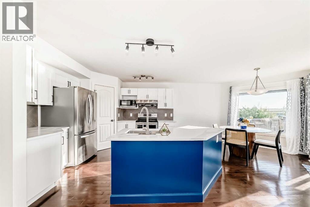 Welcome to this stunning two-storey home backing onto lush green space, offering exceptional privacy and breathtaking sunset views. The bright open-concept main floor features a spacious kitchen with a central island, walk-in pantry, and modern stove, flowing into a sunny dining nook and cozy great room with a gas fireplace and central A/C. Step out to a large west-facing deck and beautifully landscaped yard—perfect for indoor-outdoor living. A mudroom with laundry, 2-piece bath, and access to the double attached garage add everyday convenience. Upstairs offers a spacious bonus room, a serene primary suite with bay window, 3-piece ensuite, and walk-in closet, plus two additional bedrooms and a 4-piece bath. Recent updates include fresh paint, new washer, toilets, vanities, faucets, and countertops. Ideally located close to high-ranking schools, Costco, grocery stores, and with quick access to Stoney Trail, this exceptional home has it all. It’s a must-see—perfect for making lasting family memories. Don’t miss your opportunity to call this beautiful home yours! (id:53676)
