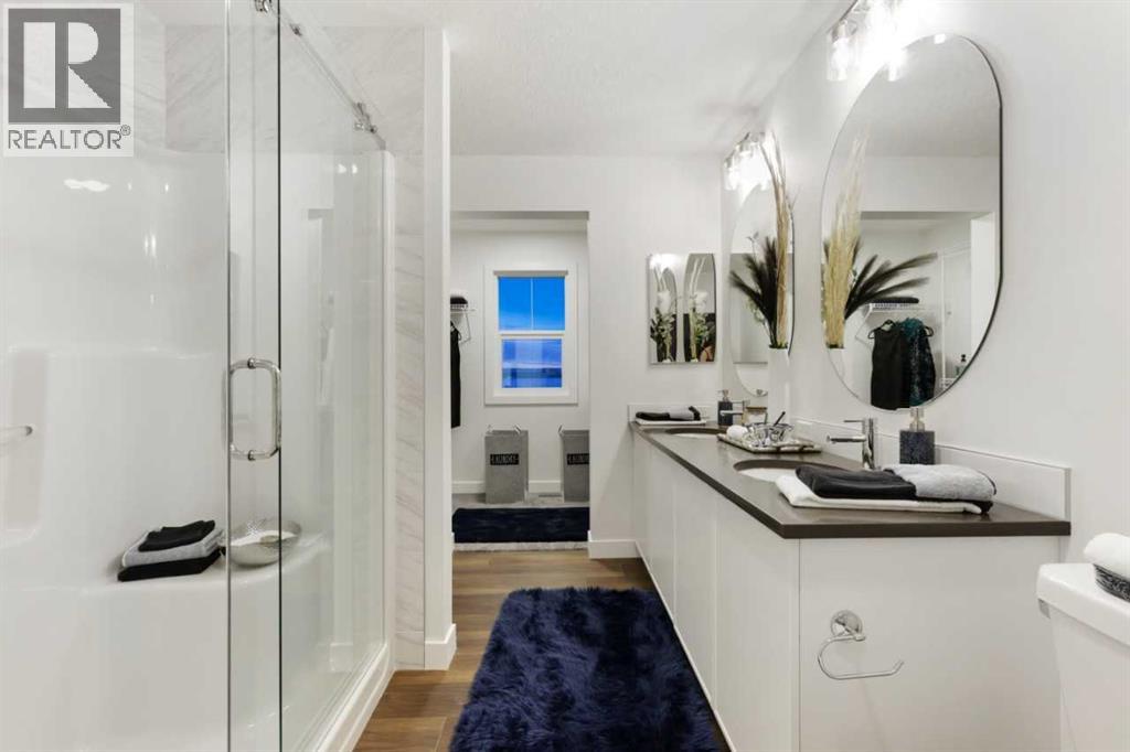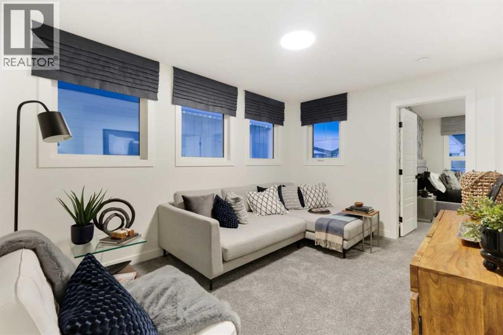 Welcome to the Abbott by Sterling Homes Calgary, this beautifully upgraded home offering modern finishes, functional design, and exceptional comfort throughout.Built by a trusted builder with over 75 years of experience, this home showcases on-trend, designer-curated interior selections tailored for a home that feels personalized to you. Energy efficient and smart home features, plus moving concierge services included in each home.The kitchen features stainless steel appliances, a chimney hoodfan with built-in microwave, single bowl Silgranit sink, pendant lighting, and a walk-in pantry with elegant French door. The main floor includes a bedroom and full bathroom—perfect for guests—along with a stylish electric fireplace accented by maple floating shelves. Upstairs, enjoy a vaulted bonus room and a stunning primary bedroom with tray ceiling and a 5-piece ensuite featuring a fiberglass base shower with tiled walls and niche, upgraded sinks, and a bank of drawers, with matching cabinetry in the main bath. Additional highlights include tile flooring in bathrooms, LVP throughout the main floor and upper common areas, quartz countertops with undermount sinks, maple railing with iron spindles, triple pane windows, extra windows for abundant natural light, a side entrance, 9’ basement wall height, and a BBQ gas line rough-in for future outdoor enjoyment. This energy-efficient home is Built Green certified and includes triple-pane windows, a high-efficiency furnace, and a solar chase for a solar-ready setup. With blower door testing, plus an electric car charger rough-in, it’s designed for sustainable, future-forward living. Featuring a full range of smart home technology, this home includes a programmable thermostat, ring camera doorbell, smart front door lock, smart and motion-activated switches—all seamlessly controlled via an Amazon Alexa touchscreen hub. Photos are a representative. (id:53676)