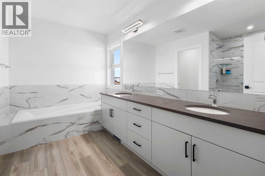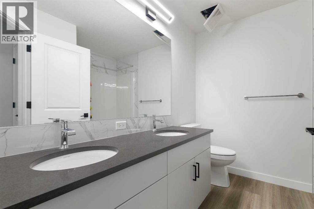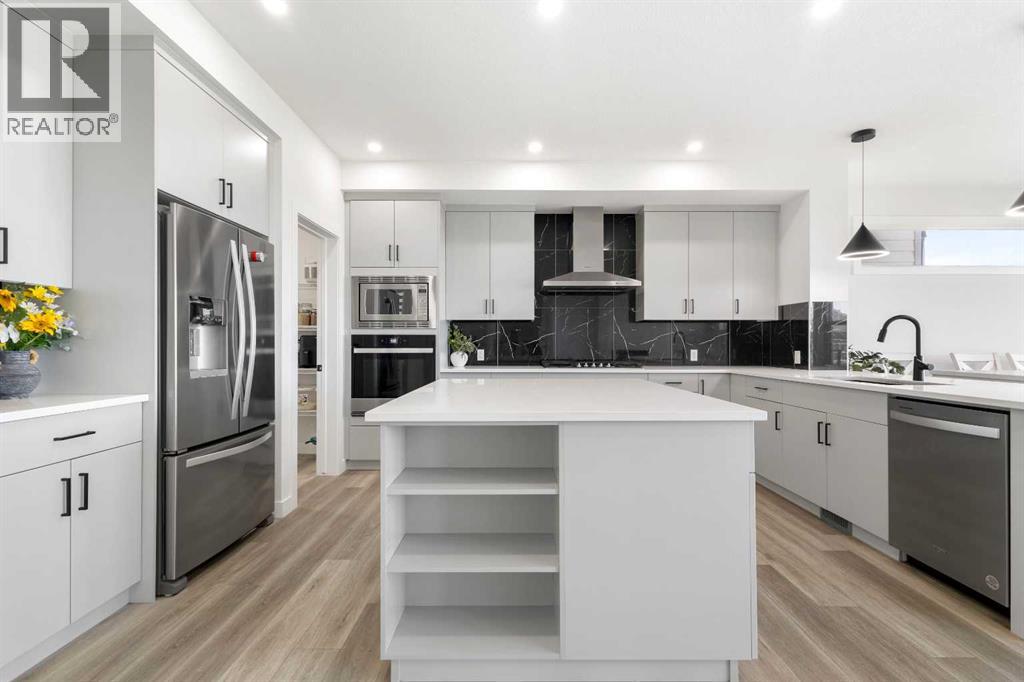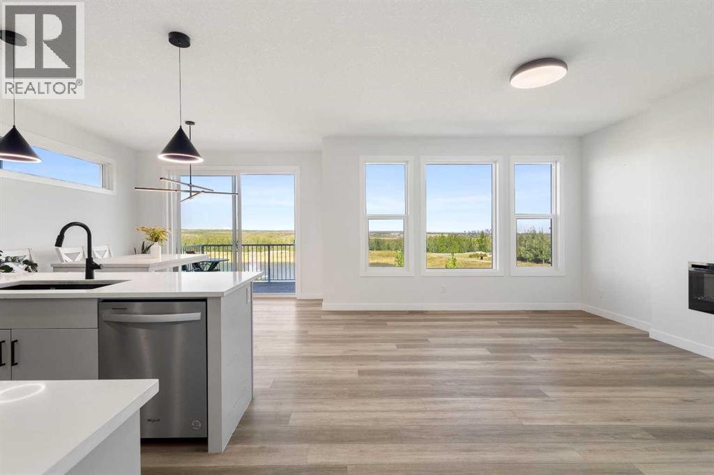 Exceptional Home in Alpine Park! Welcome to 834 Alpine Drive SW, a stunning 2,486 sq. feet. two-storey residence with four bedrooms plus a bonus room and a fully developed legal two-bedroom walkout suite. Perfectly situated on a premium lot backing directly onto a scenic pond with fountain, this home offers unobstructed mountain and downtown skyline views rarely found in Calgary’s Southwest.The main level features a bright and open floor plan with nine-foot ceilings, an office/flex room, and oversized windows framing the breathtaking views. The gourmet kitchen is equipped with built-in stainless steel appliances, a gas range, full-height cabinetry, quartz countertops, and a spacious peninsula with breakfast bar. The great room with a cozy fireplace and the dining area overlook the pond and fountain, creating an ideal setting for everyday living and entertaining.Upstairs, the luxurious primary retreat offers panoramic views and a spa-like ensuite, complemented by three additional bedrooms. A large bonus room and a conveniently located laundry room make family living effortless. All upper-level windows are fitted with premium zebra blinds.The walkout level showcases a beautifully designed legal suite with nine-foot flat ceilings, pot lighting, and expansive windows bringing in natural light and pond views. The walkout also features a full modern kitchen with ceiling-height cabinetry and quartz counters, a bright living area, two well-proportioned bedrooms, a full bathroom, and its own laundry with brand-new washer, dryer, and refrigerator. Attention should be given to the triple-layer premium soundproofing in ceilings and all the walls, the suite can ensure superb privacy from main floor and each section. This space is perfect for extended family or as a valuable rental opportunity. Please check legal suite measurement in supplements. The home has been extensively upgraded with nearly $100,000 in improvements, including a widened driveway, premium appliances, high-quality blinds, and a newly finished basement suite. The exterior offers a newly poured concrete walkway to the backyard, a large patio for outdoor gatherings, a newly installed humidifier system for year-round comfort, and direct backyard access to the pond and walking trails.834 Alpine Drive SW is truly a modern masterpiece, blending comfort, style, and functionality with some of the city’s most spectacular mountain, downtown, and waterfront views. This is a rare opportunity to own a home with mountain , fountain , downtown views in one and with legal walkout suite in one of Calgary’s most desirable new communities. (id:53676)