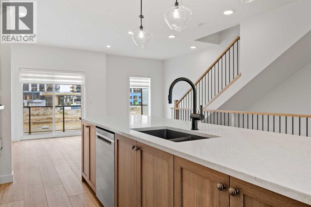 *Photos are from a similar, completed unit - finishing may vary* Welcome to this beautifully upgraded 4-bedroom, 3.5-bathroom BRAND NEW townhome in the highly desirable community of West Springs. This home has been carefully designed to balance modern style with everyday functionality—perfect for today’s busy lifestyle.Upon entry, you’re greeted by a bright and versatile foyer space and a bedroom with an ensuite - the perfect space for a home office or studio. This level also provides direct access to the double attached garage, offering ample room for parking and storage.The second floor features an open-concept layout. The kitchen is beautifully appointed with quartz countertops, a tile backsplash, abundant cabinetry, and brand-new premium appliances. A large island provides additional prep space, making the kitchen ideal for cooking and entertaining. Sliding glass doors lead to a private OVERSIZED balcony with glass privacy panels—a great spot to relax outdoors. A stylish 2-piece bathroom completes this level.Upstairs, two secondary bedrooms are located at the back of the home—well suited for children, guests, or a quiet workspace. A 3-piece bathroom with under-sink storage adds both convenience and thoughtful design. The primary bedroom creates a relaxing retreat with a large window, oversized walk-in closet with built-in organizers, and a spacious 4-piece ensuite featuring double sinks with quartz countertops, generous cabinet storage, and tiled flooring.Set in one of Calgary’s most family-friendly neighborhoods, West Springs provides easy access to shopping, dining, schools, and green spaces. A designated high school is just minutes away, and quick connections to Stoney Trail and Sarcee Trail make commuting downtown simple. For outdoor enthusiasts, Canada Olympic Park is a short drive away, offering year-round recreation.Don’t miss the opportunity to own a stylish, well-appointed home in one of Calgary’s most sought-after communities. Please visit th e showhome at 823 821 Street SW for more details! (id:53676)