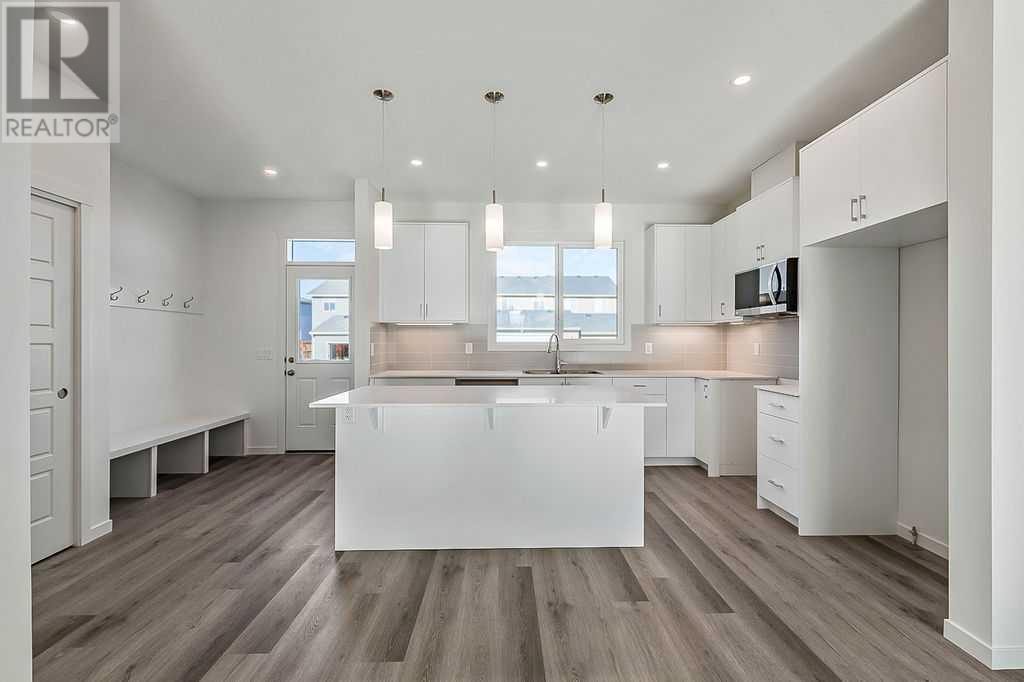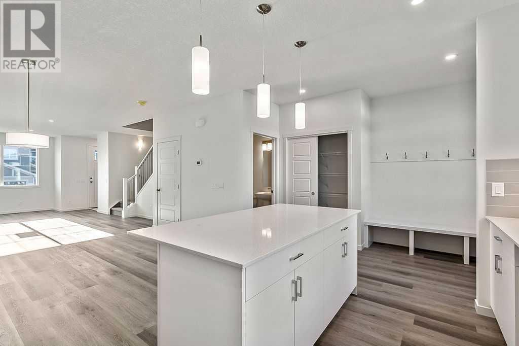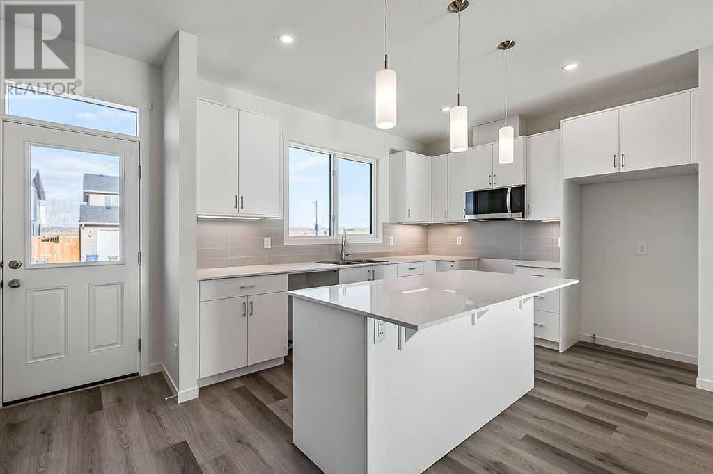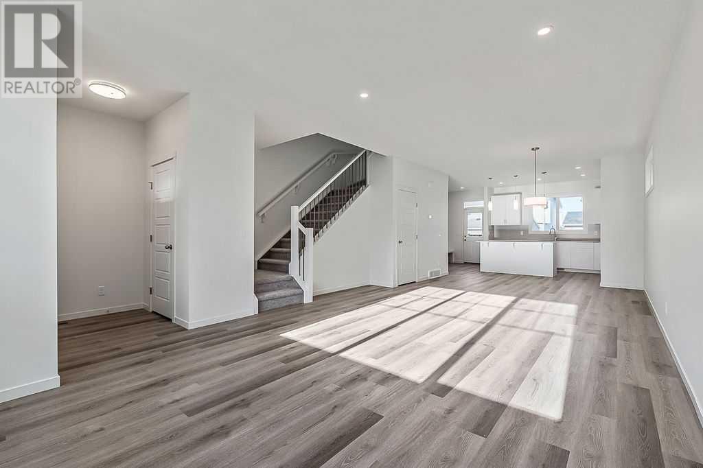 This thoughtfully designed 1,654 sq ft home offers unbeatable value with a bright, open-concept layout, clean lines, and a south-facing backyard that fills the space with natural light. The rear kitchen is the heart of the home, featuring modern finishes, quality cabinetry, and a seamless connection to the dining and living areas - perfect for everything from everyday meals to weekend entertaining. Upstairs, the central bonus room creates a flexible space for movie nights, homework, or just relaxing. The spacious primary suite includes a walk-in closet and a private ensuite, while two additional bedrooms, a full bathroom, and a conveniently located laundry room complete the upper floor. The basement awaits your ideas, and a full builder warranty offers peace of mind. Located in Calgary’s southwest, Pine Creek is a community that brings nature and convenience together. With scenic walking paths, parks, and quick access to schools, shopping, and major roads, it’s an ideal place to build your lifestyle and feel at home. (Images are of home with a similar layout and do not reflect the exact home for sale.) (id:53676)