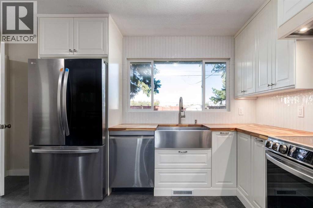 Discover an incredible opportunity with this beautifully refreshed bungalow, perfectly situated on a 50 ft lot in a sought-after location. Offering 1,050 SF of above-grade living, this home backs onto three schools and sits just minutes from restaurants, shopping, the LRT, and Inglewood Golf Course—making it a prime spot for both homeowners and investors alike. Inside, you’ll love the charm of original hardwood floors, paired with a fully renovated kitchen featuring timeless white ceiling-height cabinetry, butcher block counters, under-cabinet lighting, and stainless steel appliances. Three spacious bedrooms and a designer bathroom with expansive tile work complete the main level. The separate entrance to the untouched basement presents an incredible opportunity—suite potential (subject to City approvals), rental income, or simply a fully customized extension of your living space. Additional updates include new windows, lighting, casings, and convenient front-drive access for off-street parking. Step outside to the oversized backyard oasis with mature trees providing privacy and endless room to add a garage, garden, or entertain. Whether you’re looking for a move-in ready home, a future revenue property, or a smart long-term investment, this bungalow delivers on all fronts. (id:53676)