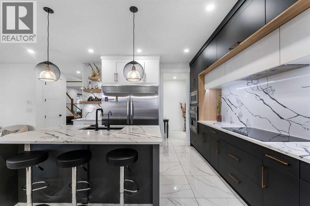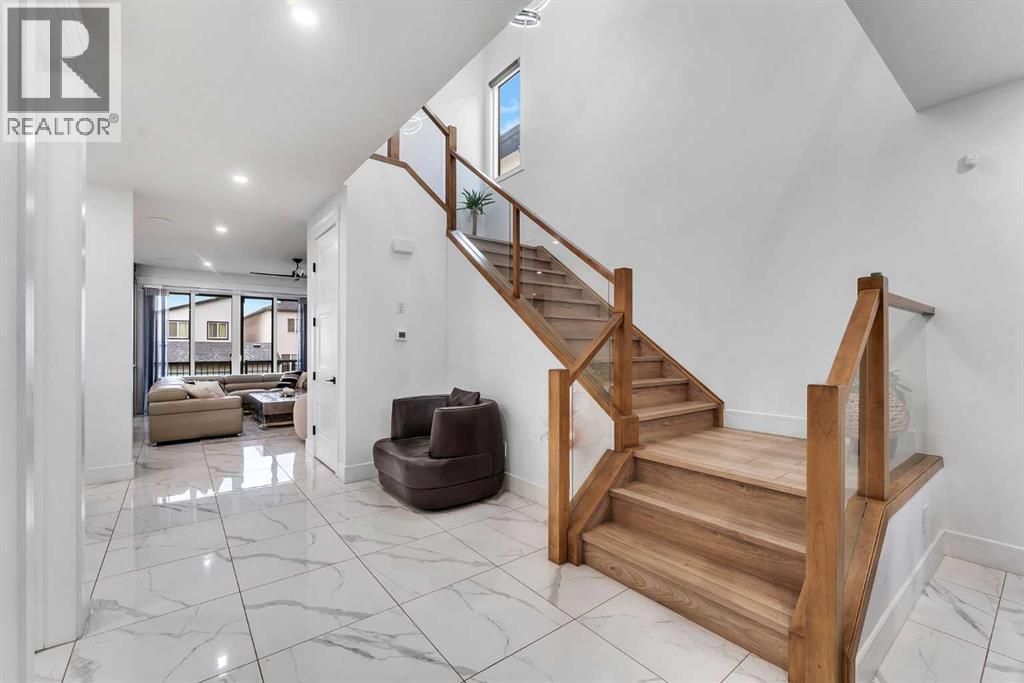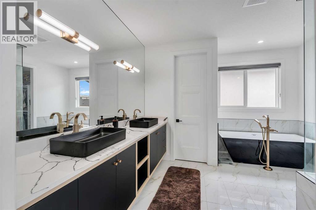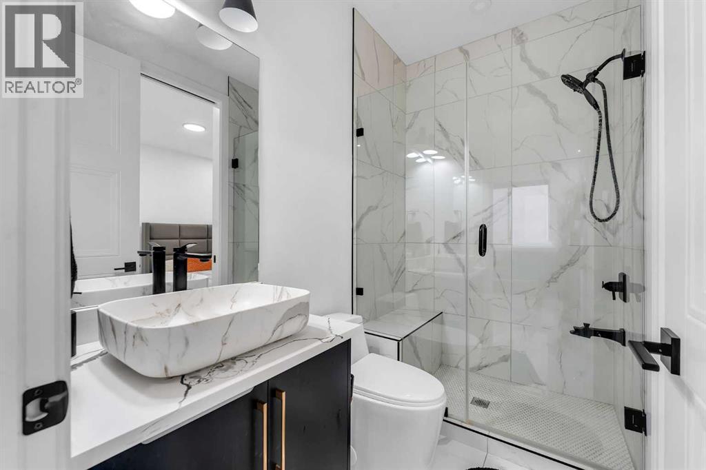Luxury Living with Income Potential | 8 Bedrooms + Den, 6 Full Bathroom | 2 Basement Suites | Saddleridge (Saddlepeace). Welcome to this exceptional, nearly new luxury home located in the highly sought-after community of Saddlepeace in Saddleridge. Thoughtfully designed with impeccable craftsmanship and loaded with premium upgrades, this residence offers a perfect blend of elegance, functionality, and investment opportunity. As you approach the home, the grand double-door entrance sets the tone for the upscale experience that awaits inside. Step into a bright, open-concept main floor featuring soaring ceilings, a spacious living room, a formal dining area, and a cozy family room—all seamlessly connected to create an inviting atmosphere ideal for entertaining and everyday living. Kitchen is a chef’s dream, showcasing top-of-the-line stainless steel appliances, a massive island, and a 48-inch-wide refrigerator. A separate spice kitchen with a sink and window keeps the main area pristine while enhancing functionality. The main level also features a bedroom with a walk-in closet, a full 3-piece bath, and a custom-built mudroom connecting to the double attached garage, which also includes a convenient side man door. A rear deck provides the perfect spot for outdoor gatherings. Upstairs, elegant glass railings lead to four generously sized bedrooms, including a luxurious primary suite with a double-door entrance, private balcony, custom walk-in closet, and a spa-like 5-piece ensuite complete with a 10-mm glass steam shower and soaker tub. Two additional bedrooms feature their own walk-in closets and private 3-piece ensuites. A second master bedroom offers even more space with a walk-in closet, 3-piece bath, and custom-built cabinetry. The upper-level laundry room includes a built-in sink for added convenience. On the third level, you’ll find a spacious den or man cave complete with wall-mounted speakers and a private balcony, ideal for relaxing or entertaining. This home is equipped for comfort year-round with dual furnaces and a soft water system. The fully developed basement includes two separate suites: a legal 2-bedroom suite and an illegal 1-bedroom suite, each with 9-foot ceilings, full-sized appliances (glass-top stoves, hood fans, refrigerators), and separate laundry areas—ideal for multi-generational living or generating rental income. The property offers ample parking with a wide driveway, perfect for multiple vehicles. The location is unbeatable—just steps from bus stops, Gurughar, and Gobind Sarvar School (K-12). Only 5 minutes to Saddletown LRT and 2 minutes to the upcoming Costco, with quick access to major routes, shopping centers, and essential amenities. Whether you're looking for a luxurious forever home or a smart income-generating investment, this property delivers on all fronts. Don’t miss this rare opportunity to own a truly one-of-a-kind home in one of Calgary’s most vibrant and grow (id:53676)