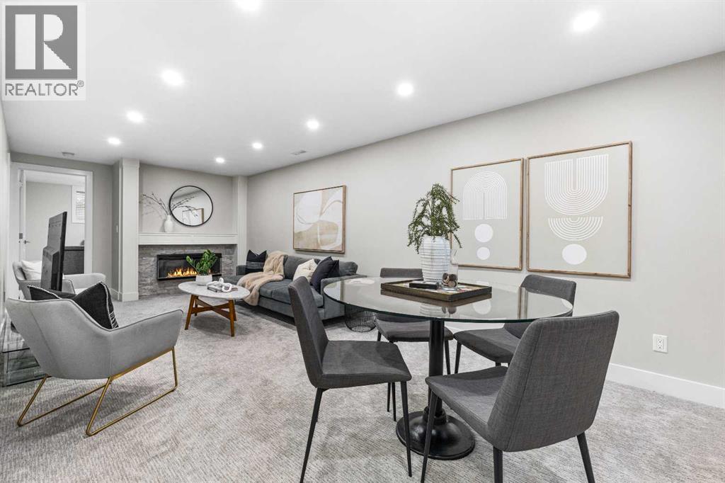 Welcome to Acadia — a beautifully renovated 2+2 bedroom bungalow tucked onto a quiet street in the heart of this established, family-friendly community. Completely redone in 2019 and offering over 1,900 sq ft of finished living space, this home blends modern comfort with timeless charm.The bright, open-concept main floor features rich hardwood floors, a welcoming living room with a custom feature wall, electric fireplace, and built-ins, plus a stylish kitchen with granite countertops, an island with seating, crisp white cabinetry, and stainless steel appliances — including an Electrolux fridge/freezer. The dining area comfortably hosts family gatherings or dinner with friends. Two generous bedrooms and a refreshed 4-piece bathroom complete this level.Downstairs, the fully developed basement is made for relaxing and entertaining — enjoy a spacious media/rec room with another fireplace and a sleek wet bar, two additional bedrooms, and a 3-piece bath.Outside, the large sunny backyard offers a great deck, mature trees, and access to the heated, oversized double detached garage — a dream setup for hobbyists or car lovers. Additional perks include newer central A/C and thoughtful updates throughout.All of this in a fantastic, walkable location close to parks, schools, shopping, transit, and quick access to Southland, Blackfoot, and Deerfoot. Immediate possession available — move in and enjoy! (id:53676)