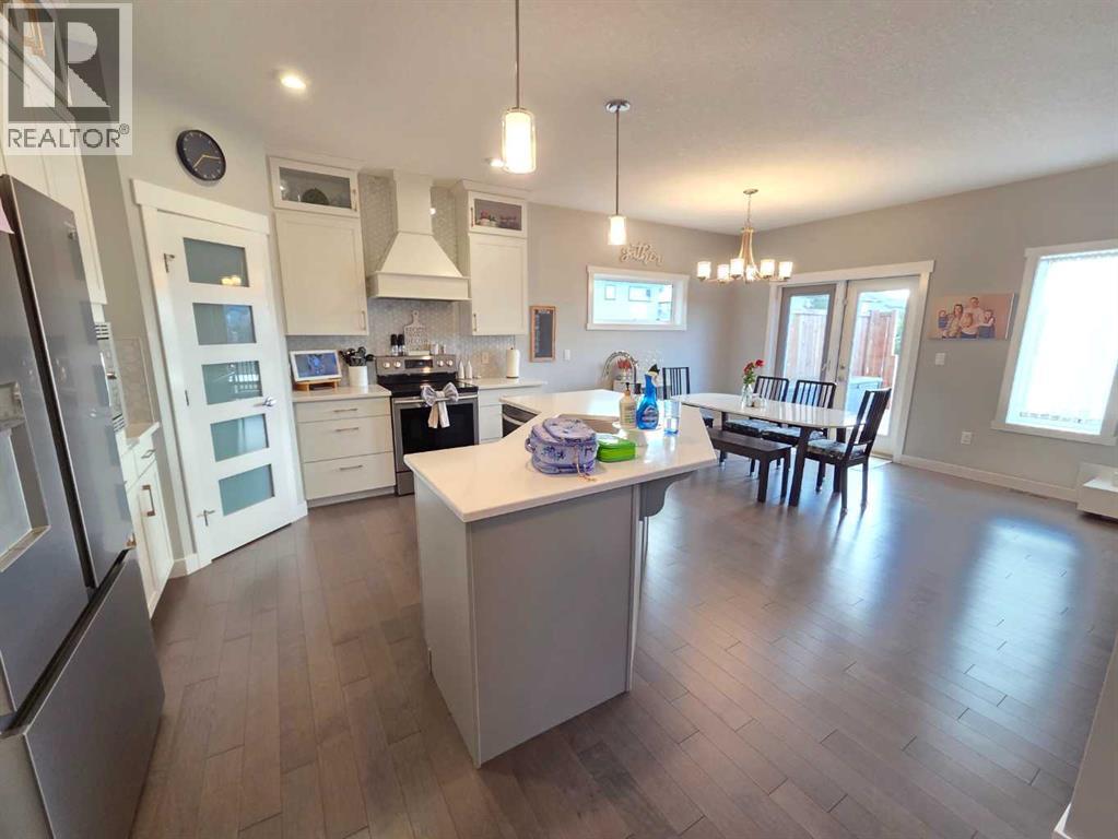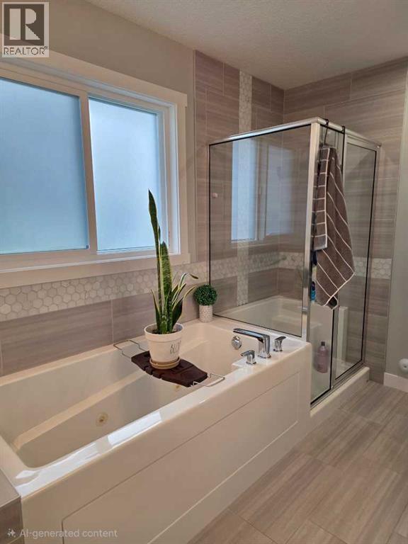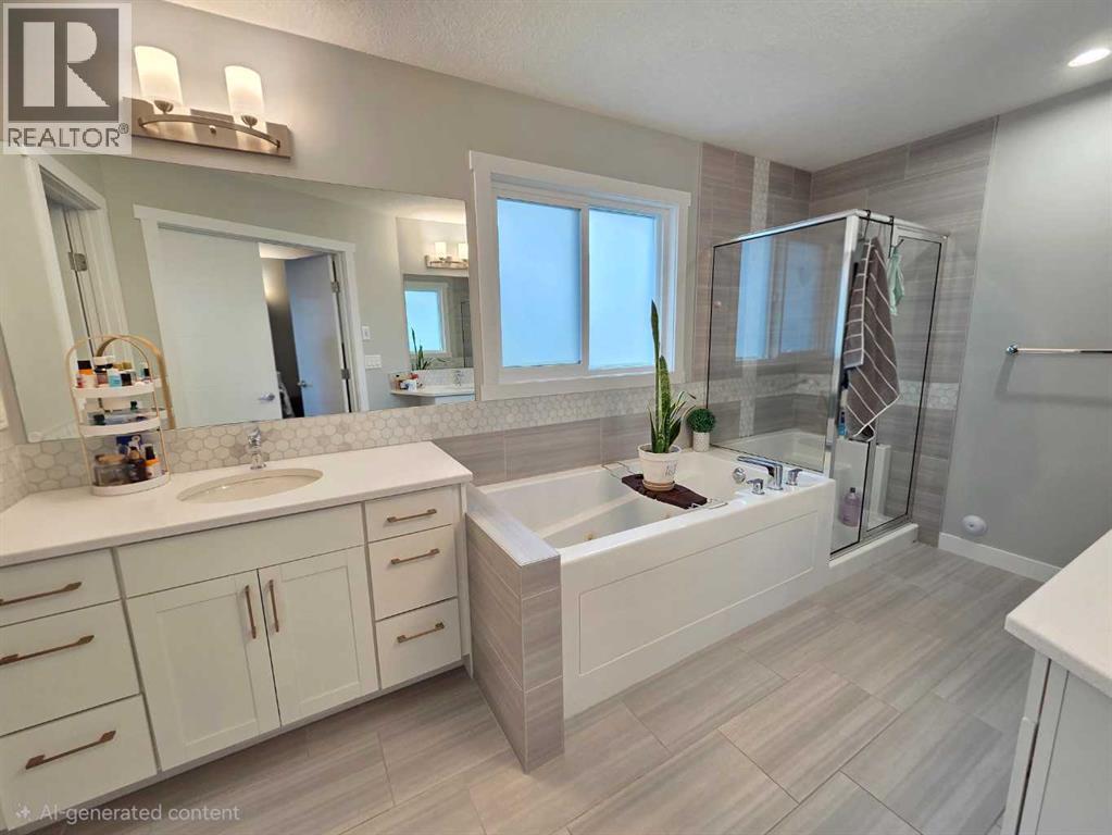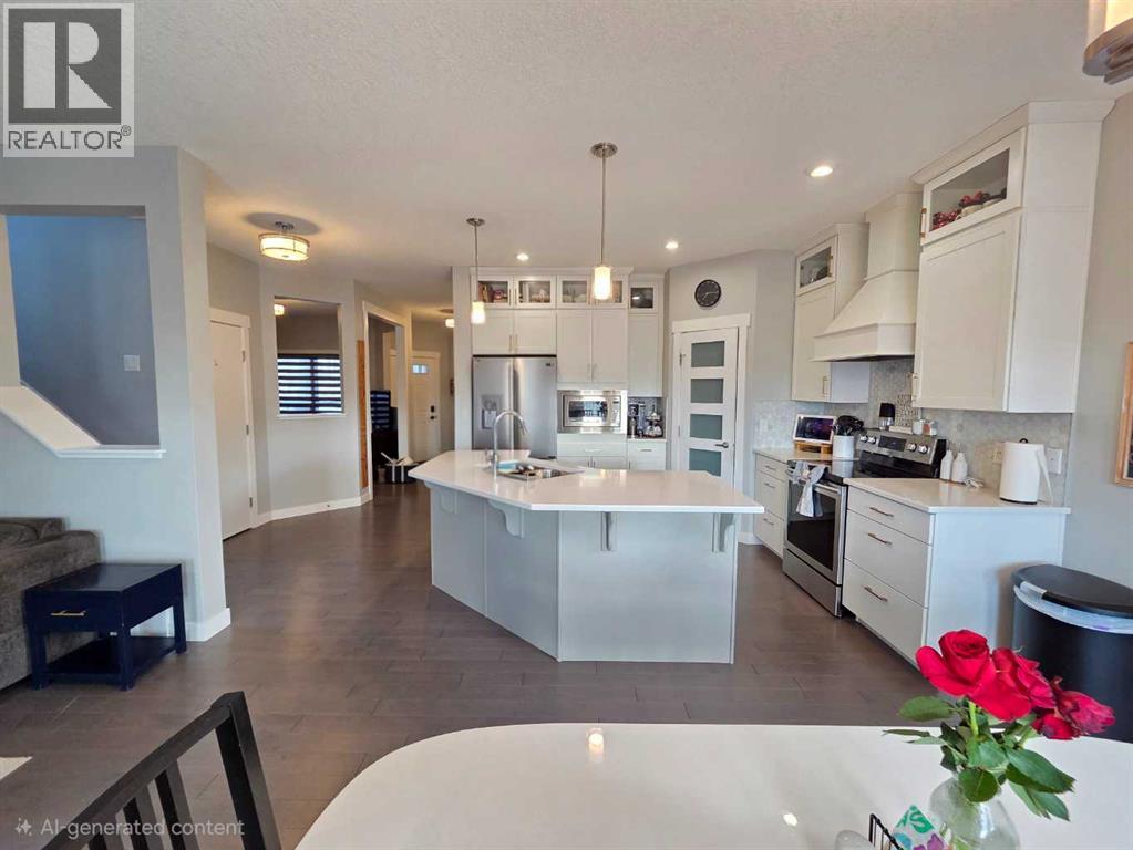 Backing onto scenic green space in the highly sought-after Riverstone neighbourhood, this exceptional two-storey home offers the perfect blend of modern design, thoughtful upgrades, and an unbeatable layout.Step inside to a bright and inviting open-concept main floor, highlighted by a massive quartz island, floor-to-ceiling white cabinetry, and sleek appliances. The spacious dining area flows seamlessly onto a large deck—perfect for entertaining—while the cozy living room features a gas fireplace with stunning stone detail and custom built-ins.Upstairs, you’ll find an impressive layout designed for today’s busy family, complete with a generous bonus room, four spacious bedrooms, and convenient upper-level laundry. The primary suite is a true retreat, showcasing vaulted ceilings, a large walk-in closet, and a luxurious spa-inspired ensuite.This home is loaded with upgrades and extras, including a heated garage, air conditioning, hot water on demand. The fully landscaped and fenced yard offers a private, west-facing backyard complete with a massive deck, and a hot tub—perfect for relaxing while enjoying the peaceful park views.Built with quality and meticulously maintained, this property stands out from the rest. A rare opportunity to own a move-in ready home in one of the city’s most desirable locations. (id:53676)