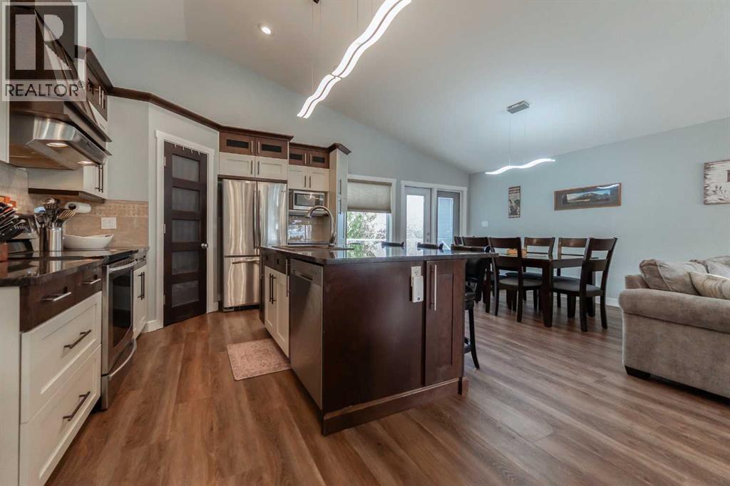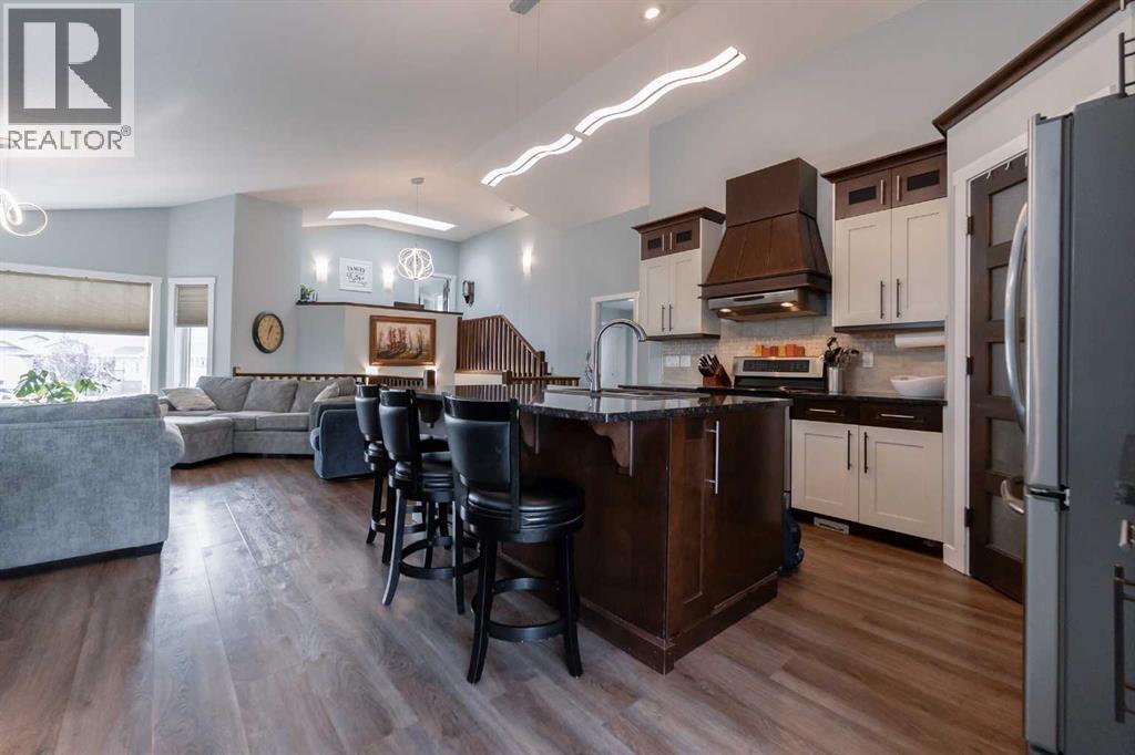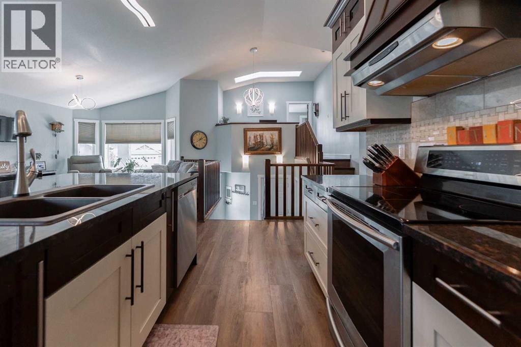 Bright, spacious, and upgraded throughout, this 1,681 sq. ft. bi-level is designed for modern family living and will impress from the moment you walk in! The open-concept main floor features custom kitchen cabinetry, granite countertops, and seamless flow between living and dining areas. Oversized windows fill the home with natural light, while new vinyl plank flooring and fresh paint inside and out make it move-in ready! The primary suite includes a 5-piece ensuite, walk-in closet with built-in laundry, and a dedicated office/computer space. With 5 bedrooms, 3 full bathrooms, and a fully finished walk-out basement, there’s room for everyone! The lower level includes a large rec room with gas fireplace, huge windows, and direct access to a versatile 3-season flex space that’s already equipped with heat, electricity, and potential for— a fitness room, office, or even a hot tub room. For added convenience, the utility room is plumbed for a second washer/dryer. Outside, enjoy the large front porch, underground sprinklers, and professionally installed Trimlite Christmas lights. The oversized heated double garage and expansive driveway provide ample parking and storage. Backing onto Dr. Robert Plaxton Elementary School on a generous southside lot, this home blends comfort and location into one incredible package. Contact your favourite REALTOR® today to book your private viewing! (id:53676)