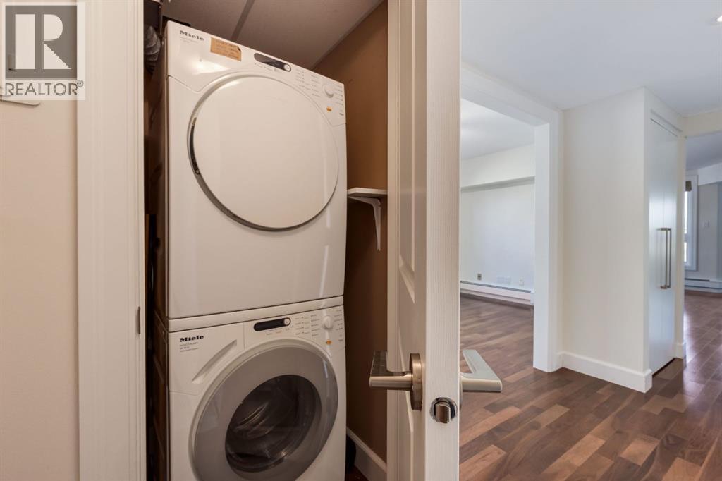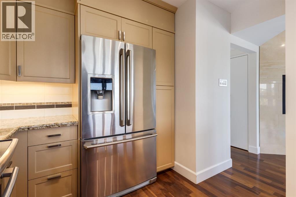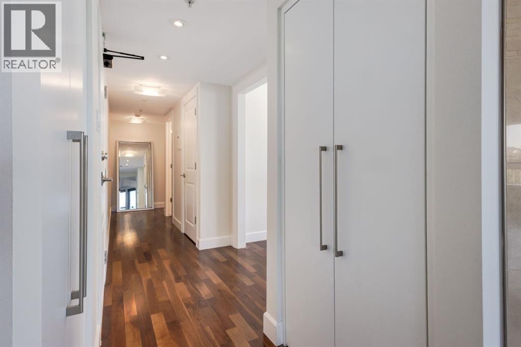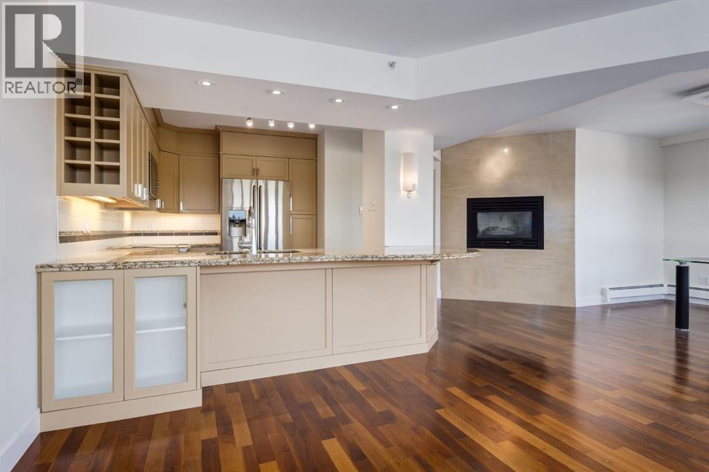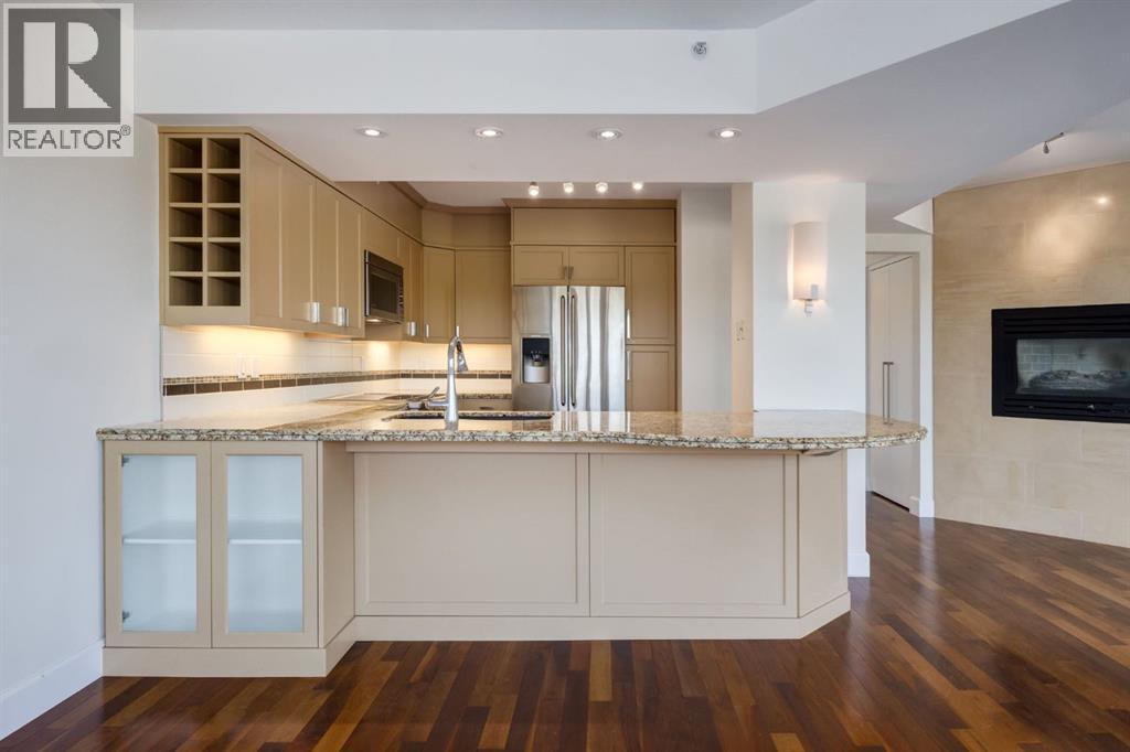 Experience elevated downtown living in this freshly painted and exquisitely updated 1 bedroom plus den residence, designed for discerning buyers who value elegance, convenience, and a truly maintenance-free lifestyle. With sweeping north and west views of the Bow River Valley and Prince’s Island Park, this home offers a serene retreat amidst the vibrancy of the city. Every detail has been thoughtfully curated, from the rich black walnut hardwood floors to the granite countertops and a modern chef’s kitchen with premium stainless steel appliances, including an induction range. The light-filled den, overlooking a private courtyard, offers versatility as a refined home office, welcoming guest suite, or easily converted second bedroom. The spacious primary retreat features a generous walk-in closet, ensuite with a deep soaker tub, and abundant storage, complemented by a second full bath with a walk-in tiled shower. Step onto the expansive west facing terrace, perfect for entertaining or unwinding, complete with a gas BBQ line and panoramic river valley views. For those seeking the ultimate indulgence, hot tubs are permitted with board approval, creating a private outdoor sanctuary. This luxury residence also includes heated titled parking, underground storage, in-suite Miele laundry, on-site management, and a convenient car wash bay. Condo fees cover all utilities except cable and internet, ensuring effortless living. Set within Calgary’s most prestigious riverside community, and just steps from the newly opened members-only Eau Claire Athletic Club, this home is ideal for snowbirds, downsizers, and buyers seeking a secure lock-and-leave lifestyle. Suite 8704 defines sophistication, comfort, and turnkey luxury in the heart of Eau Claire. Book your private showing today. (id:53676)