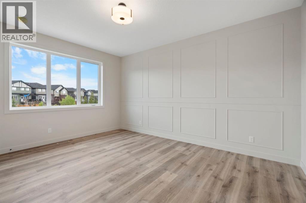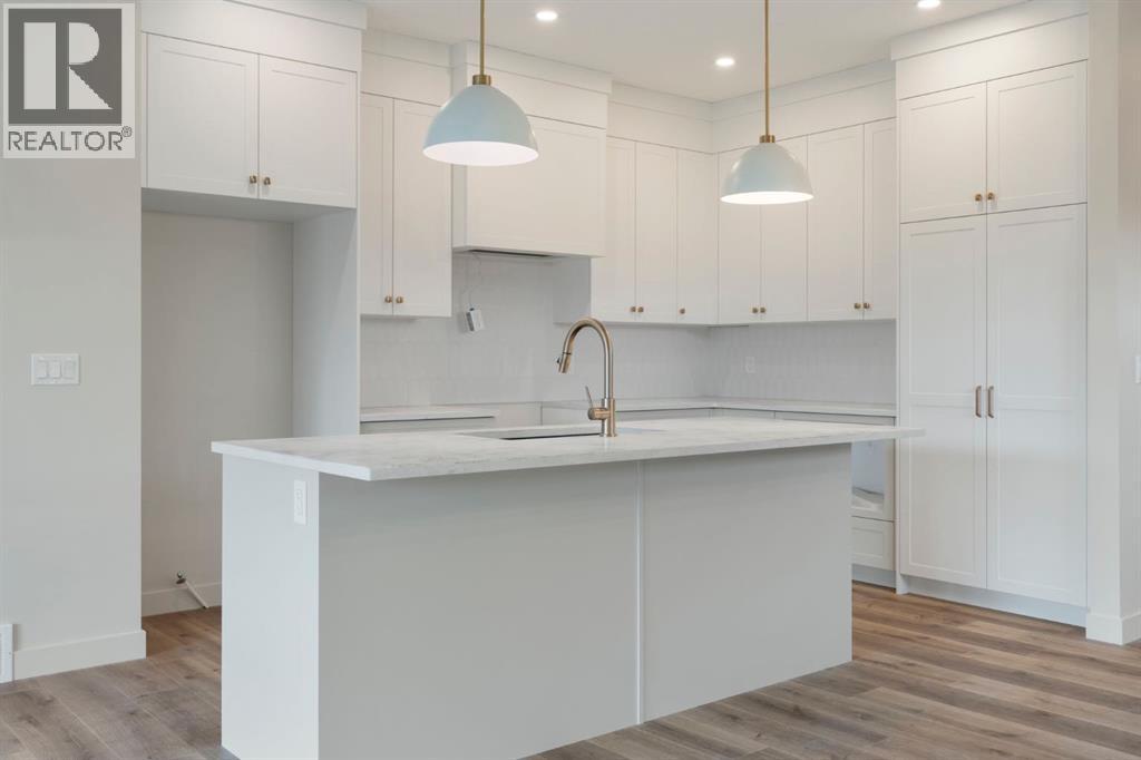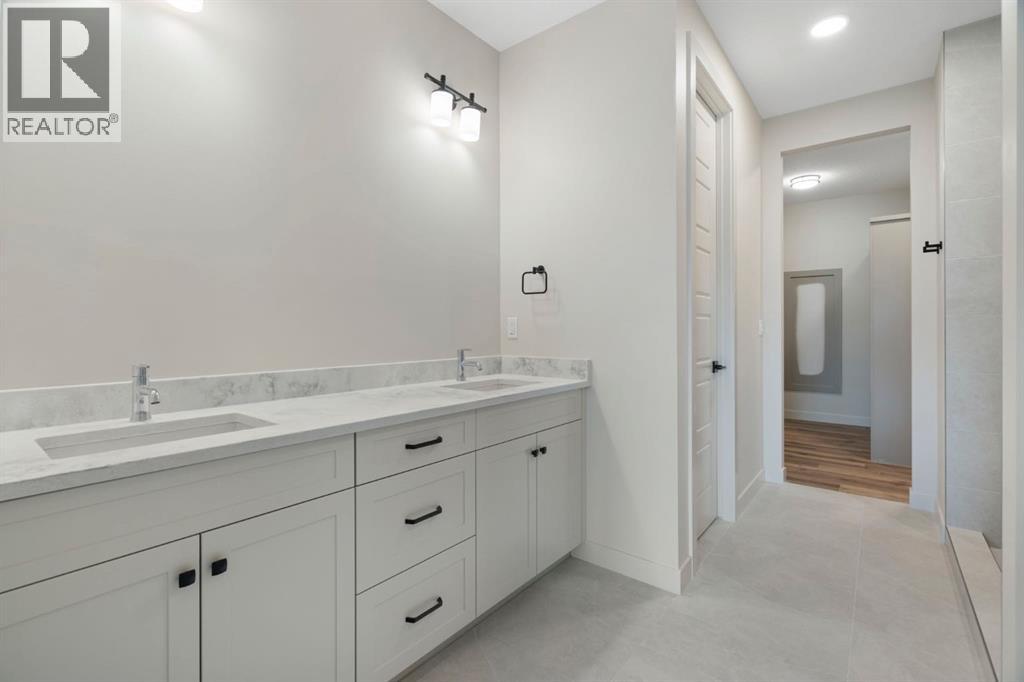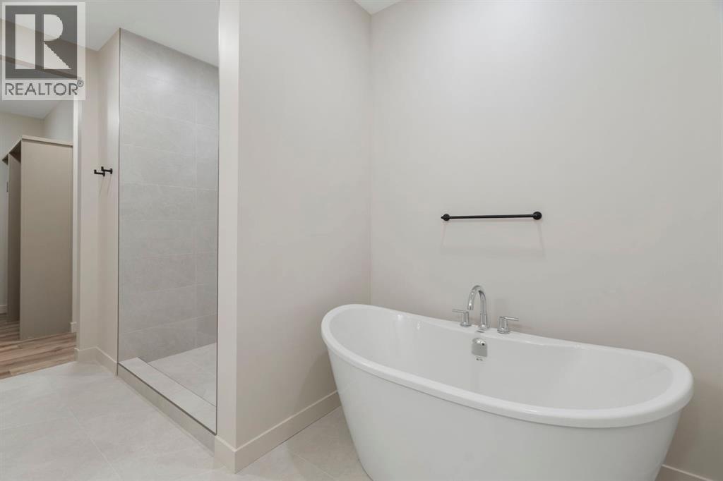 Step into the perfect blend of location, luxury, and lifestyle in this fully developed walkout bungalow in Sunset Ridge, one of Cochrane’s most sought-after family-friendly communities. Nestled on a pie-shaped lot backing a green-space pathway and playground, this home is ready for you to move in. Award-winning Aspen Creek Designer Homes presents the Ethan model, showcasing quality craftsmanship and thoughtful design at every turn. The open-concept main floor is anchored by a stunning kitchen featuring quartz countertops, a large island, custom cabinetry, and stainless steel appliances. The adjoining living room, complete with a cozy fireplace, opens onto a 17x10 deck, ideal for your morning coffee!The primary suite is a true retreat. Detailed with elegant wainscotting, it features a stand-alone soaking tub, spacious walk-in shower, dual vanities, and a custom walk-in closet with built-in shelving that conveniently connects to the walk-through laundry room. Neutral tones throughout create a timeless, sophisticated atmosphere.The walkout lower level offers room for everyone with a family/games area, a stylish wet bar, two additional bedrooms with a 4-piece bath in between, with plenty of storage and utility space. Outside is your east-facing backyard, perfect for soaking in the morning sun or enjoying the evening air. The yard has been completely sodded and ready for your personalized touches.Sunset Ridge is known for its family-first amenities, including RancheView School (K-8) and St. Timothy’s High School, multiple playgrounds, and an extensive network of walking paths that make weekend strolls and bike rides a breeze. With downtown Cochrane and the Bow River just minutes away, you can have both a peaceful neighbourhood lifestyle and easy access to everything the town offers. Book your showing today! Exterior Photo is an artist rendering only. (id:53676)