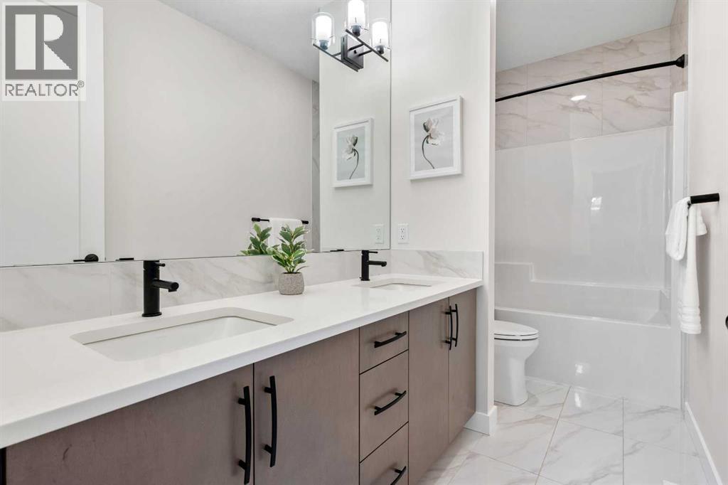 *Open House - Saturday, November 29 from 12-2PM* Welcome to 887 Seton Circle, a stunning Jayman Built home ideally situated on a rare traditional homesite in the highly sought-after community of Seton. This nearly new property has been thoughtfully upgraded throughout and includes many of the ENERGY-SAVING FEATURES typically found in brand-new construction.The home includes TWELVE SOLAR PANELS, a TANKLESS HOT WATER HEATER, a smart thermostat, and TRIPLE-PANE WINDOWS, all of which help reduce monthly utility costs while contributing to a more environmentally conscious lifestyle. The garage is also pre-wired to accommodate a future ELECTRIC VEHICLE CHARGER.The gourmet kitchen is designed for both style and functionality, featuring premium KitchenAid appliances, including a built-in wall oven and a microwave/convection oven combination. High ceilings throughout the home create an open, airy feel, with 9-FOOT CEILINGS and 8-FOOT DOORS on both levels. Durable luxury vinyl plank flooring offers easy maintenance, while matte black plumbing fixtures add a modern, cohesive finish. The main floor also features a convenient two-piece bathroom with a vanity and a well-organized mudroom with built-in lockers.Upstairs, the primary bedroom is crafted as a relaxing retreat with a tray ceiling enhanced by LED lighting, custom built-in closet organizers, and a spa-inspired five-piece ensuite. A large soaker tub offers a perfect place to unwind. Two additional bedrooms share a second five-piece bathroom, and a central bonus room provides separation from the primary suite for added privacy.The unfinished basement offers excellent potential for future development, with bathroom rough-ins and 9-FOOT CEILINGS already in place.Additional features include Ring cameras at both the front and rear doors, smart light switches, a smart thermostat, a smart garage door opener, a high-efficiency two-stage furnace, and a water softener. Seton’s Urban District offers an array of restaurants and shops, the world’s largest YMCA, and Calgary’s SOUTH HEALTH CAMPUS hospital. Residents also enjoy access to a 13,000-SQUARE-FOOT HOMEOWNERS ASSOCIATION FACILITY located beside a private park exclusively for Seton homeowners. Community amenities include a splash park, hockey rink, tennis courts, gardens, entertainment space, and more. (id:53676)