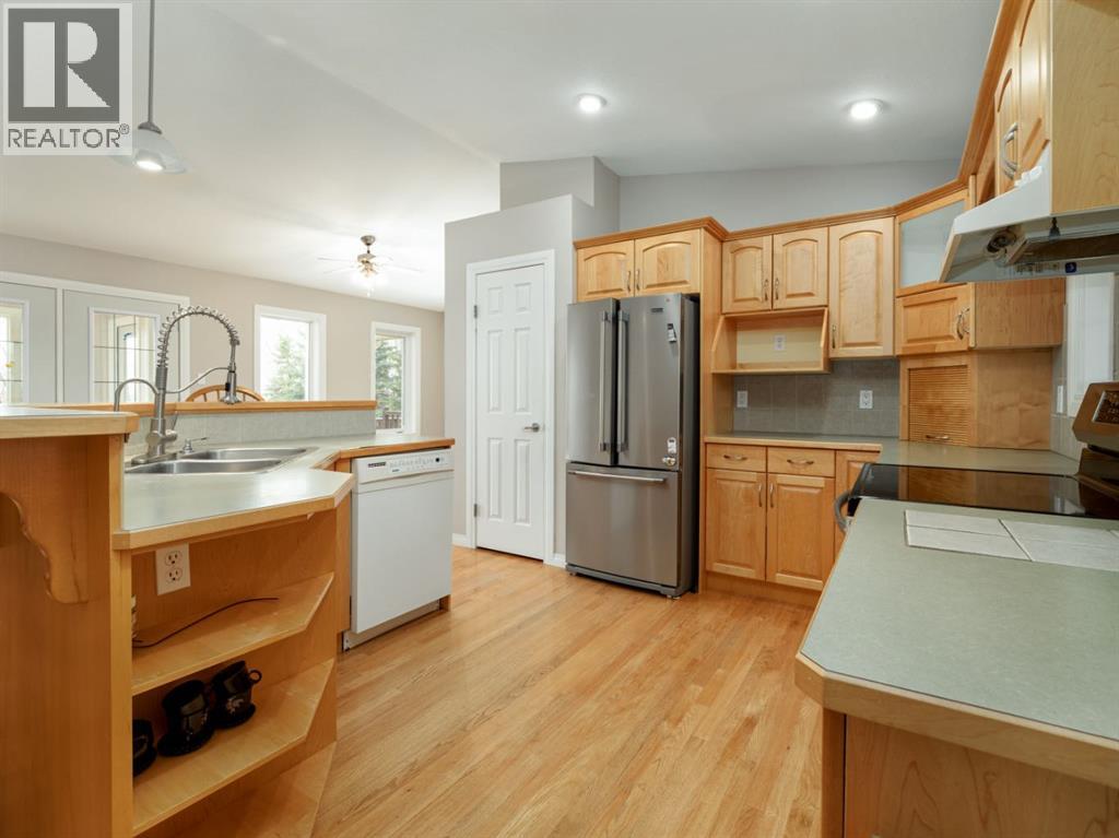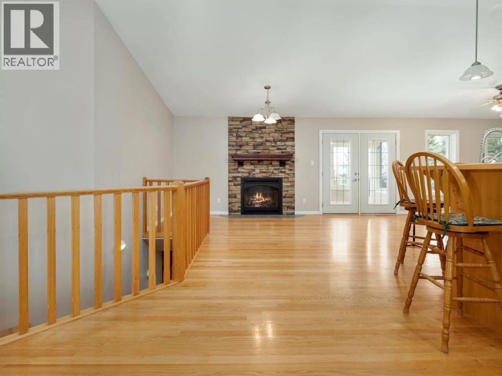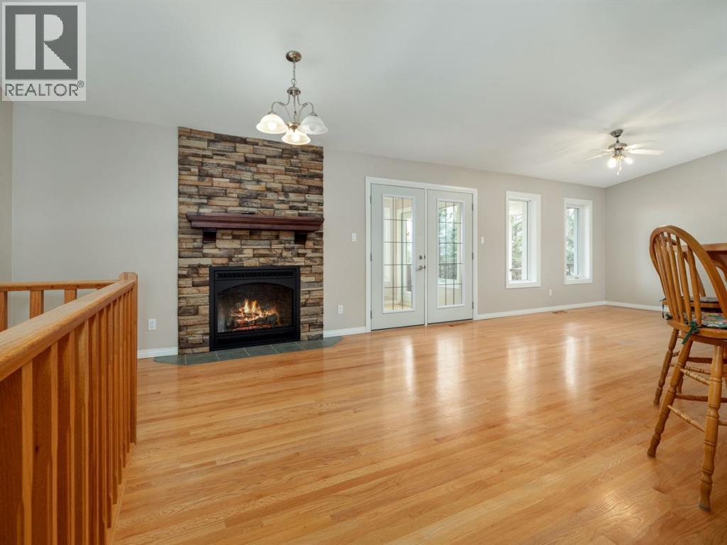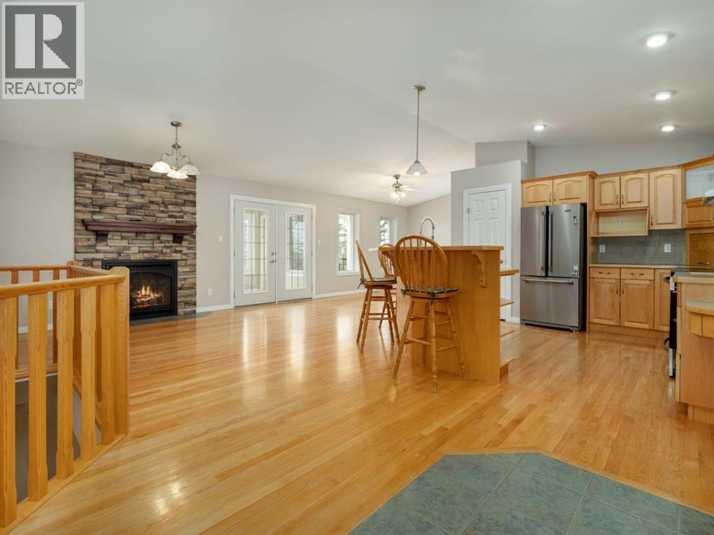 An acreage in Park Lake Estates (with Municipal Water!!) is available! This one owner walkout bungalow on 1.7 acres is ready for its' new owner to enjoy all it has to offer. The quality speaks for itself as the house was built with concrete block construction, has a metal roof and there are solar panels that make electricity bills very manageable and also underground sprinklers on timer. There are two bedrooms up and two in the walkout level allowing for privacy for your family. Primary bedroom has door to patio overlooking the backyard. The enclosed sunroom offers you a great gathering spot being protected from the weather ... also would be awesome for gardeners starting their plants in the spring! The lower level has in floor heating, the main floor is heated by a forced air furnace. There's oak hardwood, wood parquet and ceramic tile flooring plus the floor plan is open concept in the living, dining and kitchen areas. The warmth of the maple cabinets in the kitchen and gas fireplace in the living room make these areas welcoming. A large heated attached double garage with two separate garage doors plus a large shop in the rear of the property give you ample room for storage. There is a $200.00 per month charge which includes all household water, garbage pickup, and irrigation water pump electricity. The fee for irrigation water (from Park Lake) is approximately $500.00 per year. This is a great property to enjoy all the country feels! Please call the agent of your choice for a private viewing. (id:53676)