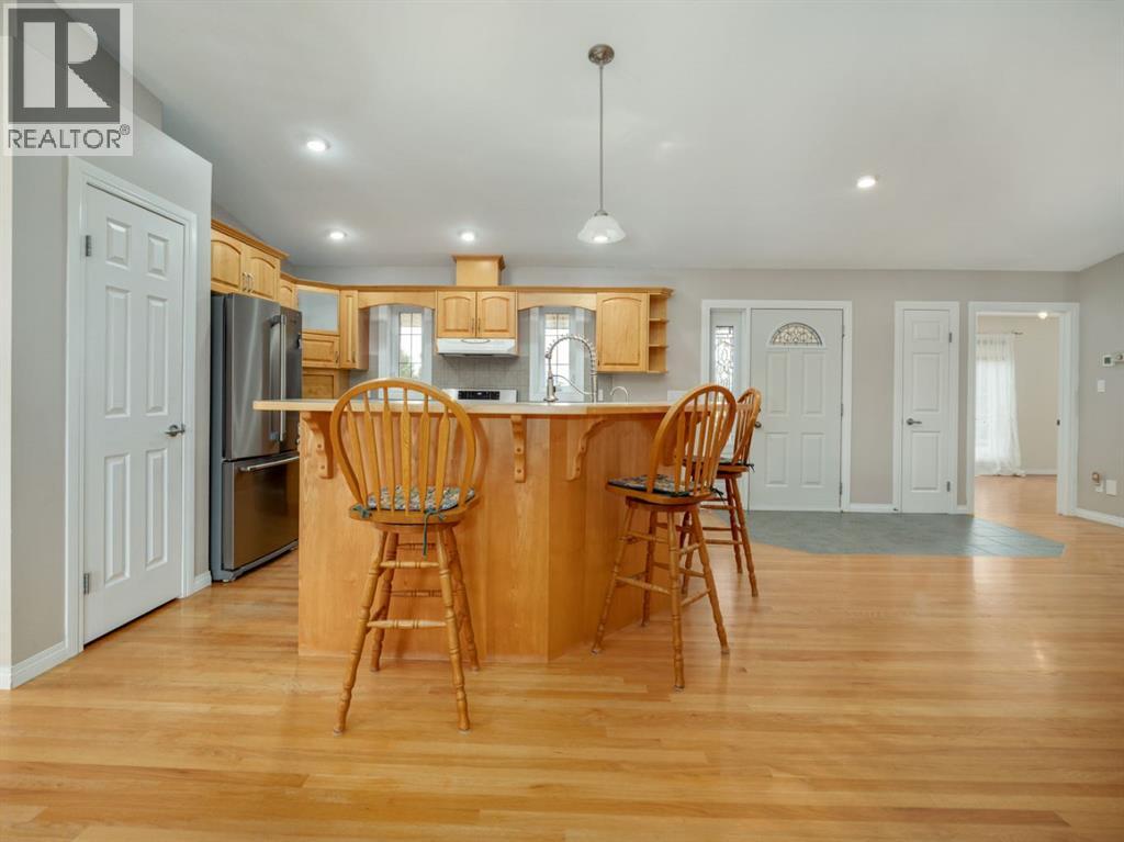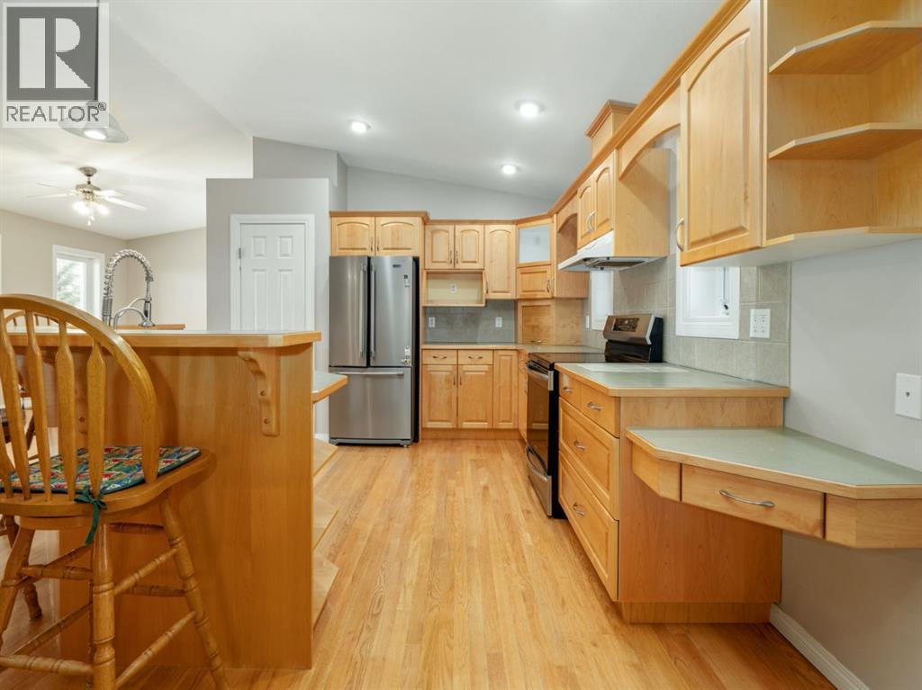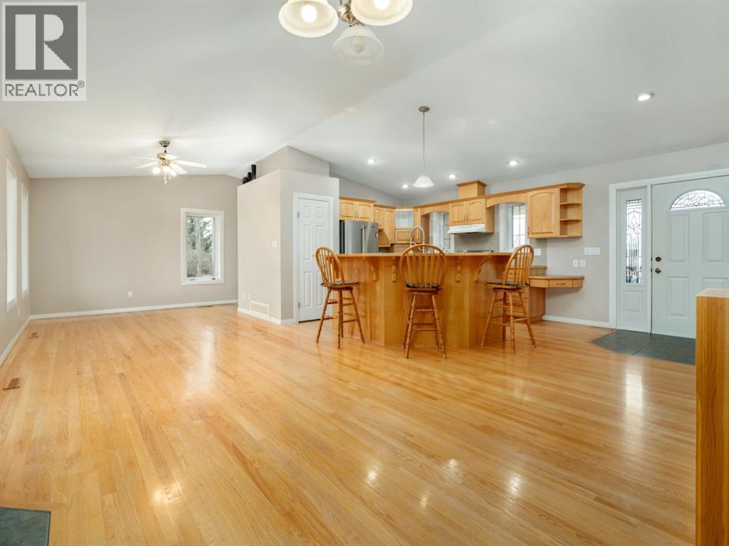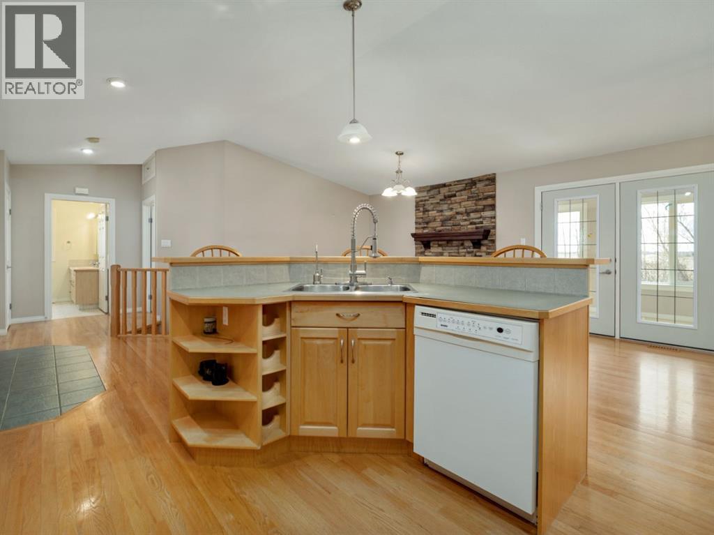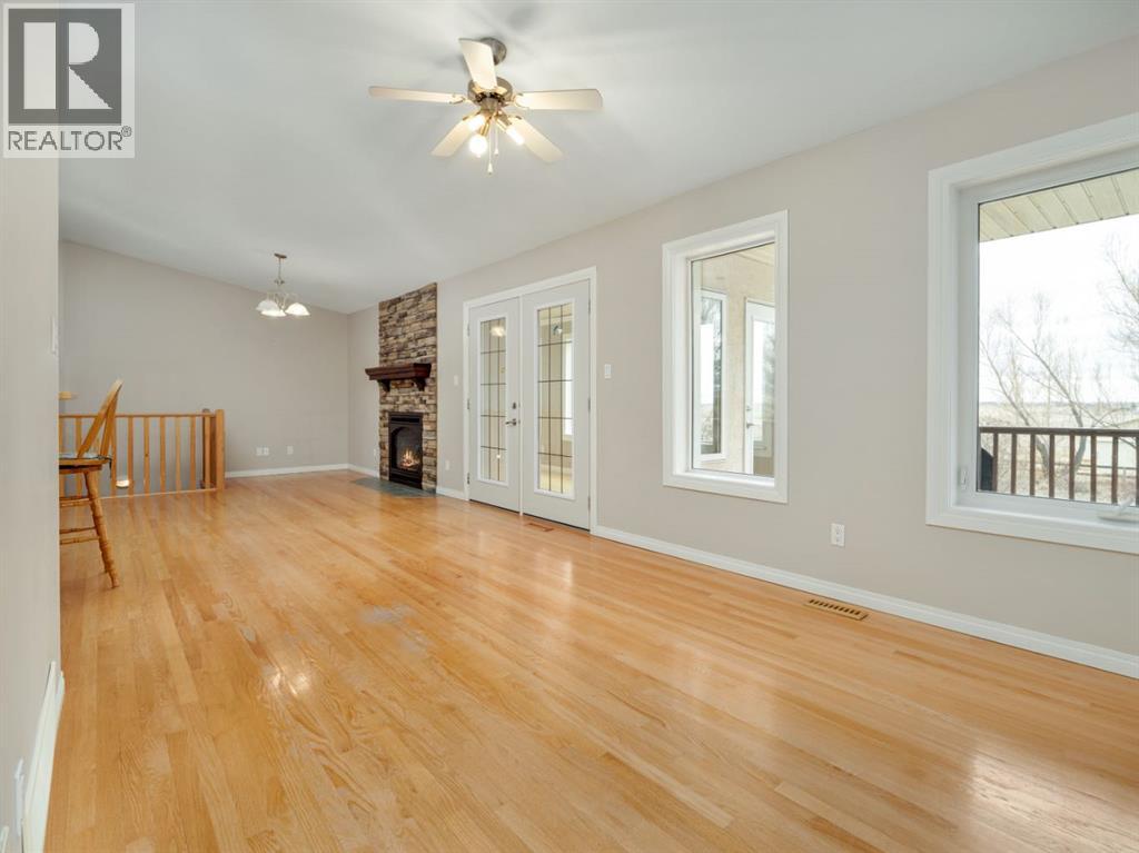 An acreage in Park Lake Estates (with Municipal Water!!) is available! This one owner walkout bungalow on 1.7 acres is ready for its' new owner to enjoy all it has to offer. The quality speaks for itself as the house was built with concrete block construction, has a metal roof and there are solar panels that make electricity bills very manageable and also underground sprinklers on timer. There are two bedrooms up and two in the walkout level allowing for privacy for your family. Primary bedroom has door to patio overlooking the backyard. The enclosed sunroom offers you a great gathering spot being protected from the weather ... also would be awesome for gardeners starting their plants in the spring! The lower level has in floor heating, the main floor is heated by a forced air furnace. There's oak hardwood, wood parquet and ceramic tile flooring plus the floor plan is open concept in the living, dining and kitchen areas. The warmth of the maple cabinets in the kitchen and gas fireplace in the living room make these areas welcoming. A large heated attached double garage with two separate garage doors plus a large shop in the rear of the property give you ample room for storage. There is a $200.00 per month charge which includes all household water, garbage pickup, and irrigation water pump electricity. The fee for irrigation water (from Park Lake) is approximately $500.00 per year. This is a great property to enjoy all the country feels! Please call the agent of your choice for a private viewing. (id:53676)