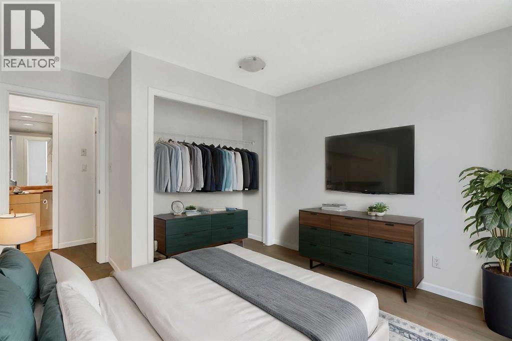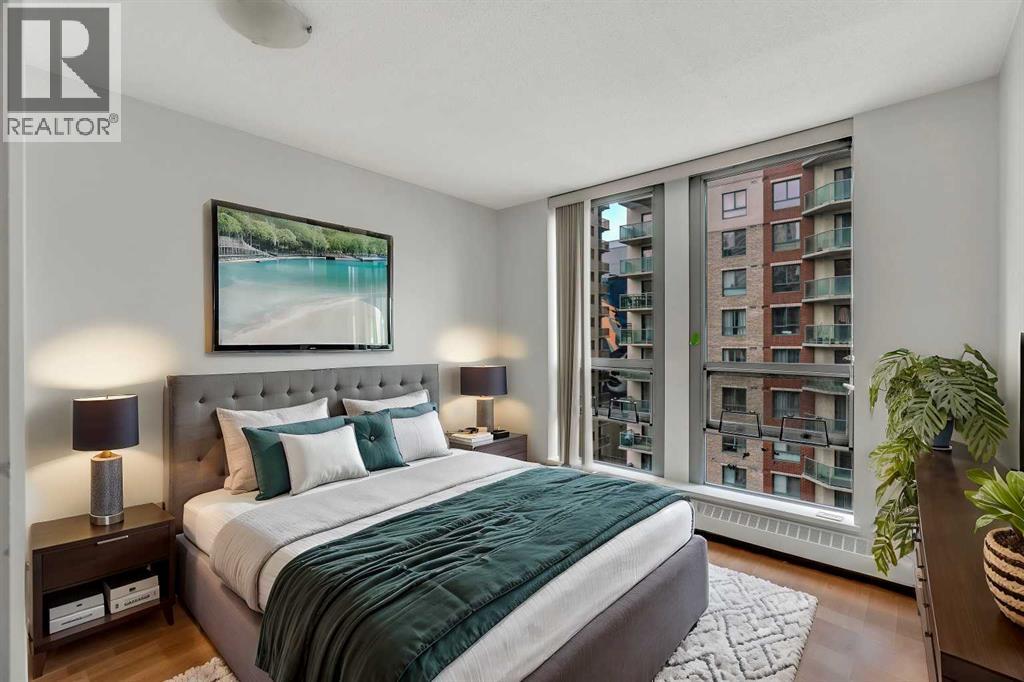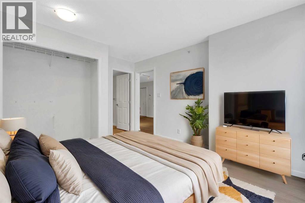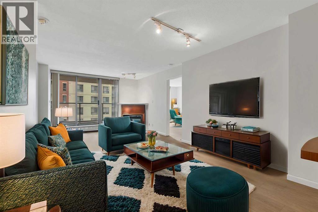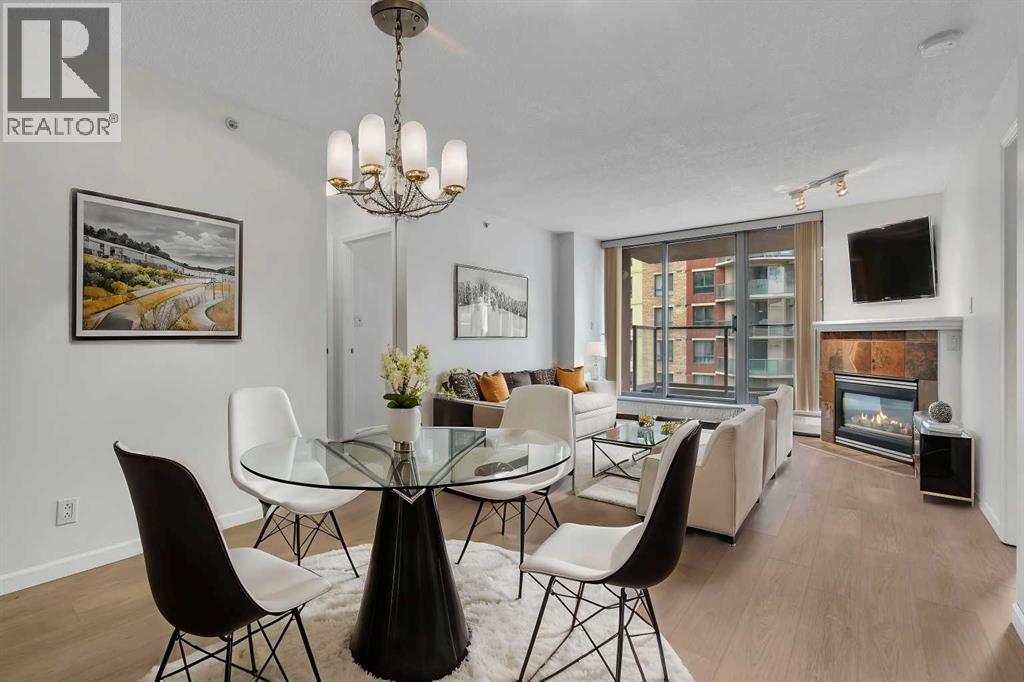 Welcome to 902, 650 10 Street SW – A Riverfront Gem in the Heart of Calgary. Discover urban living at its finest in this stunning 2-bedroom, 2-bathroom condo, perched on the 9th floor of the renowned Axxis building, offering breathtaking views of the Bow River. Perfectly located just two blocks from the scenic Bow River pathways, one block from the C-Train station, and a 10-minute walk to grocery stores and some of Calgary’s top dining spots, including Bridgette Bar, Wayne’s Bagels, and Noble Pie. The Axxis is a well-managed, pet-friendly building that boasts an array of premium amenities, including a fully equipped fitness center, a spacious social room with a kitchen for entertaining, a serene outdoor courtyard, visitor parking, and secure bike storage. Step inside this bright and airy west-facing unit, where freshly painted neutral tones complement the open-concept living space. The spacious living room, complete with a cozy gas fireplace, flows seamlessly into the kitchen, featuring a large island with an eating bar—perfect for casual dining or entertaining. Luxury vinyl plank flooring add to the home's stylish appeal, while the generous west-facing balcony invites you to enjoy sunset views. The primary bedroom offers a peaceful retreat, tucked away from the main living area, with ample closet space and a private 4-piece ensuite. The second bedroom is versatile, making it ideal for a home office or as a guest room for roommates. This unit also includes the convenience of an underground heated parking stall and additional storage, ensuring comfort and practicality in every detail. (id:53676)