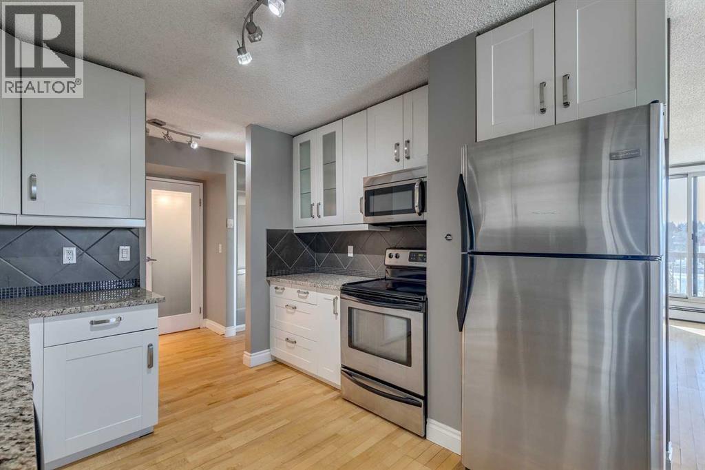 Perched on the top floor in the heart of Calgary’s vibrant Beltline, this renovated penthouse condo offers modern style and everyday convenience. Featuring 2 bedrooms, 1 bathroom, and 820 sq. ft. of thoughtfully updated living space, this home combines comfort with urban sophistication.The kitchen showcases granite countertops, stainless steel appliances, and fresh paint throughout, while in-suite laundry (hook-up), secure underground parking, and extra storage add everyday ease.The true highlight is the expansive wrap-around southwest-facing balcony, offering sweeping views of the downtown skyline—a perfect spot to relax, unwind, or entertain guests.With two elevators, a quiet and well-maintained building, and an unbeatable location just steps from trendy shops, restaurants, cafes, and nightlife, this is inner-city living at its finest. Book your private showing today! (id:53676)