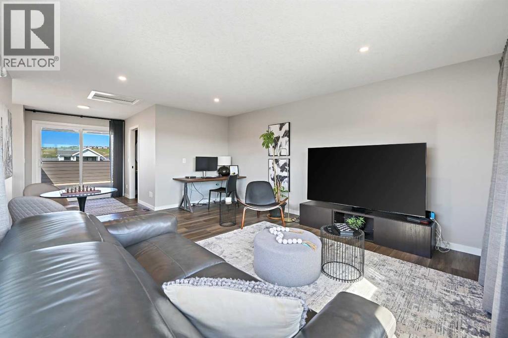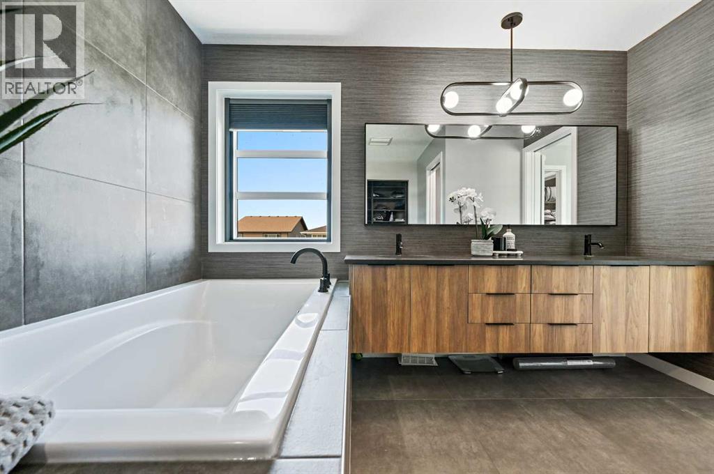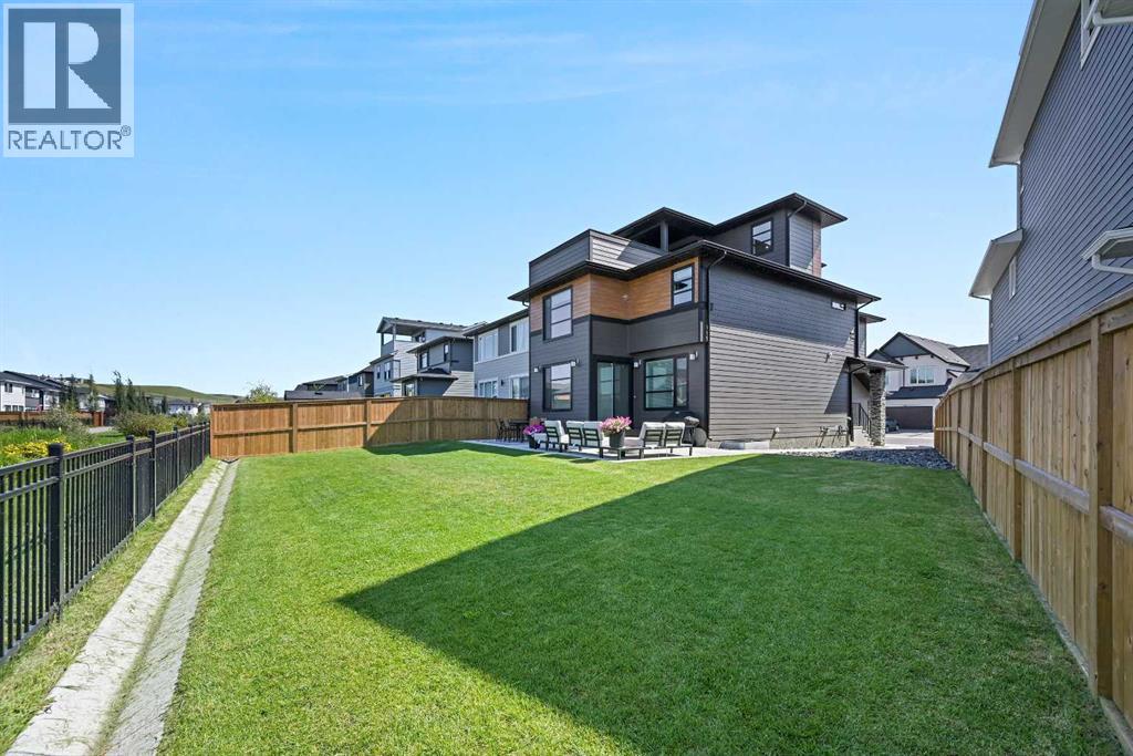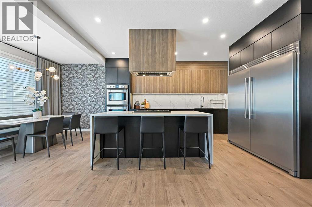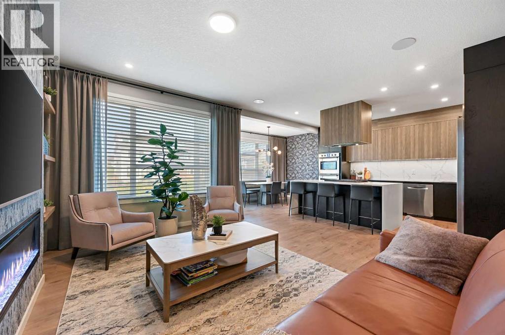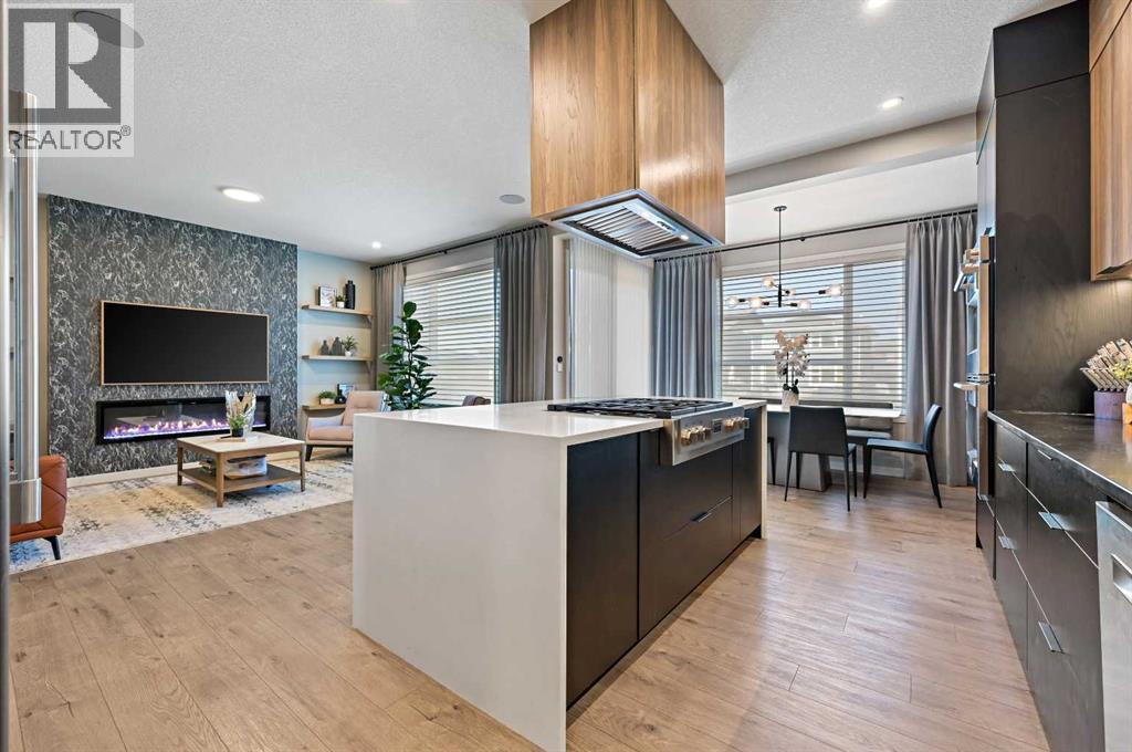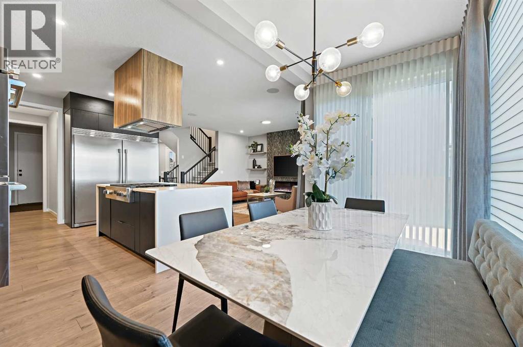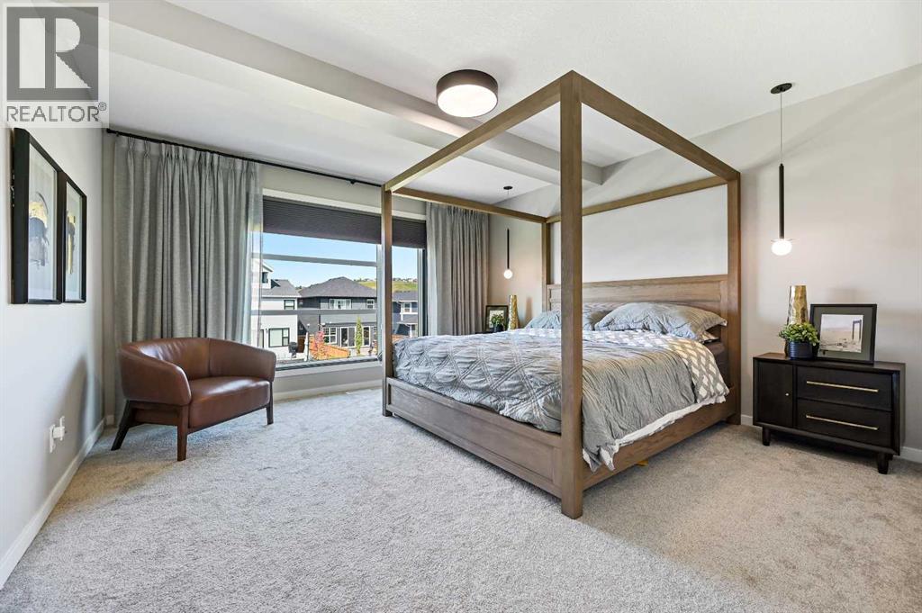 CLASSIC CEDARGLEN ESTATE | ORIGINAL OWNERS | RIVER VIEWS | ENGINEERED ROOFTOP 20' x 13' HOT TUB PATIO | 4 BEDROOMS + BONUS ROOM A true classic for the discerning buyer! Ideally located in Cranston, just steps from the Bow River pathways, Fish Creek Park, Century Hall, ice rink, ridge trails, schools, shopping, transit, and quick Cranston exits, this Cedarglen-built masterpiece blends lifestyle, location, and luxury. Meticulously crafted by the original owners, this urban-style home offers over 2,757 sq. ft. of elegant living space with 4 bedrooms, 3.5 bathrooms, a versatile third-floor bonus zone, and a covered rooftop hot tub patio with sweeping river views—a rare find. The main floor impresses with 9’ ceilings, wide-plank hardwood floors, designer lighting, an electric fireplace, wood staircase railings, and detailed trim throughout. At its heart is the spectacular chef’s kitchen, designed for both efficiency and entertaining: custom paneled cabinetry, quartz counters with a waterfall edge, matching quartz backsplash, upgraded Fulgor Milano stainless appliances including a 6-burner gas cooktop, a wood-clad hood cover, walk-through pantry, dramatic island with seating, and recessed lighting. The open layout seamlessly connects to the dining area and great room for modern family living. Upstairs, the primary retreat features a spa-like ensuite with a soaker tub, glass shower, dual sinks, and walk-in closet. Three additional bedrooms, an upper laundry room, and a spacious central bonus room complete the level. Other highlights include an unspoiled basement with 9 ceilings, a huge pie-shaped backyard with valley views, a 32-foot by 11-foot concrete patio plus BBQ area, and a quiet cul-de-sac setting backing onto a central green space. Stunning curb appeal with stone detailing, concrete walkways, and a covered front entry add to the charm. This is not just a home—it’s a lifestyle, combining estate-level finishes, thoughtful design, and one of Cranston’s most desirable locations. Quick possession available—call your friendly REALTOR® today to schedule your private tour! (id:53676)