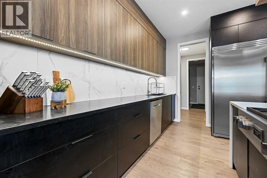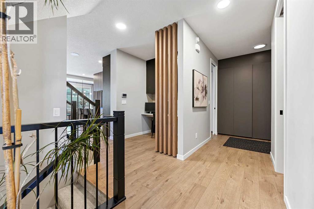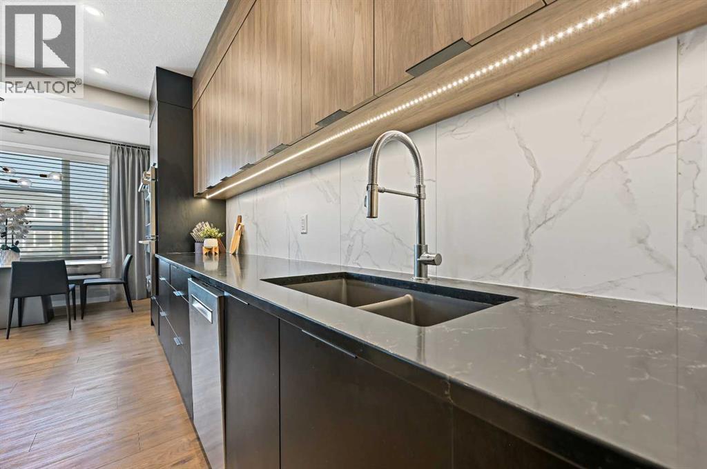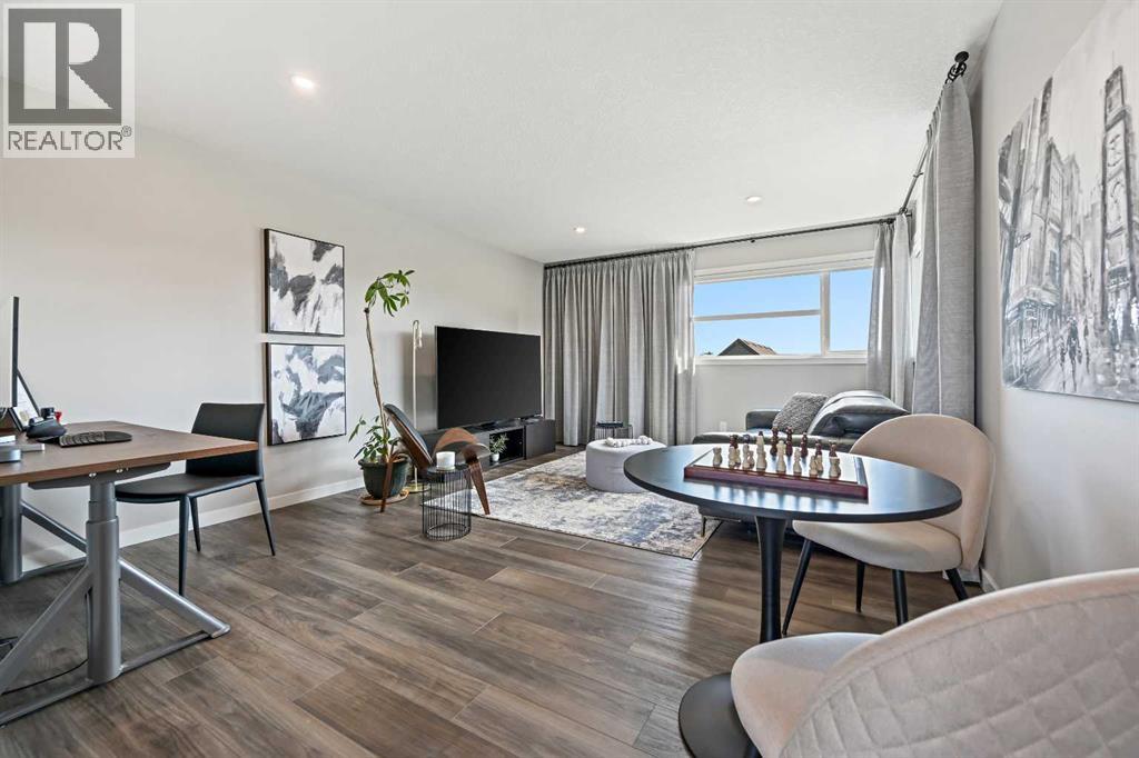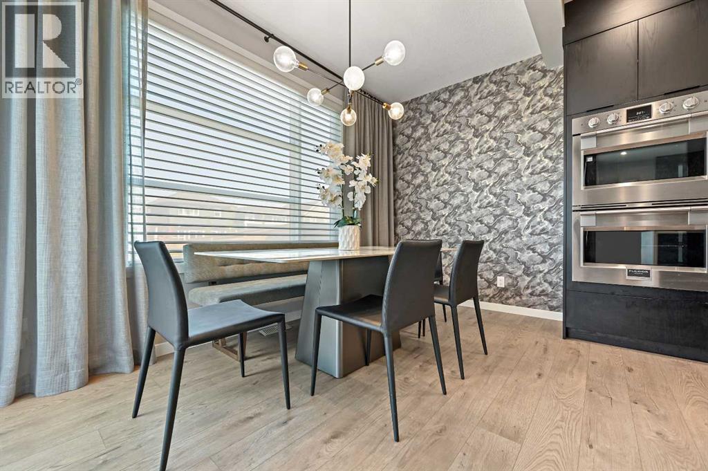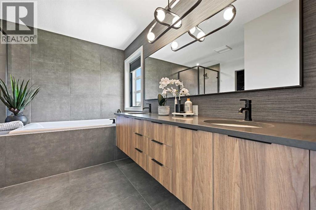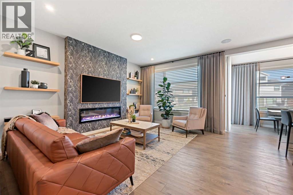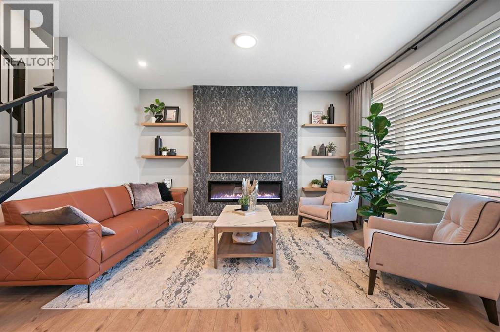 CLASSIC CEDARGLEN ESTATE | ORIGINAL OWNERS | RIVER VIEWS | ENGINEERED ROOFTOP 20' x 13' HOT TUB PATIO | 4 BEDROOMS + BONUS ROOM A true classic for the discerning buyer! Ideally located in Cranston, just steps from the Bow River pathways, Fish Creek Park, Century Hall, ice rink, ridge trails, schools, shopping, transit, and quick Cranston exits, this Cedarglen-built masterpiece blends lifestyle, location, and luxury. Meticulously crafted by the original owners, this urban-style home offers over 2,757 sq. ft. of elegant living space with 4 bedrooms, 3.5 bathrooms, a versatile third-floor bonus zone, and a covered rooftop hot tub patio with sweeping river views—a rare find. The main floor impresses with 9’ ceilings, wide-plank hardwood floors, designer lighting, an electric fireplace, wood staircase railings, and detailed trim throughout. At its heart is the spectacular chef’s kitchen, designed for both efficiency and entertaining: custom paneled cabinetry, quartz counters with a waterfall edge, matching quartz backsplash, upgraded Fulgor Milano stainless appliances including a 6-burner gas cooktop, a wood-clad hood cover, walk-through pantry, dramatic island with seating, and recessed lighting. The open layout seamlessly connects to the dining area and great room for modern family living. Upstairs, the primary retreat features a spa-like ensuite with a soaker tub, glass shower, dual sinks, and walk-in closet. Three additional bedrooms, an upper laundry room, and a spacious central bonus room complete the level. Other highlights include an unspoiled basement with 9 ceilings, a huge pie-shaped backyard with valley views, a 32-foot by 11-foot concrete patio plus BBQ area, and a quiet cul-de-sac setting backing onto a central green space. Stunning curb appeal with stone detailing, concrete walkways, and a covered front entry add to the charm. This is not just a home—it’s a lifestyle, combining estate-level finishes, thoughtful design, and one of Cranston’s most desirable locations. Quick possession available—call your friendly REALTOR® today to schedule your private tour! (id:53676)