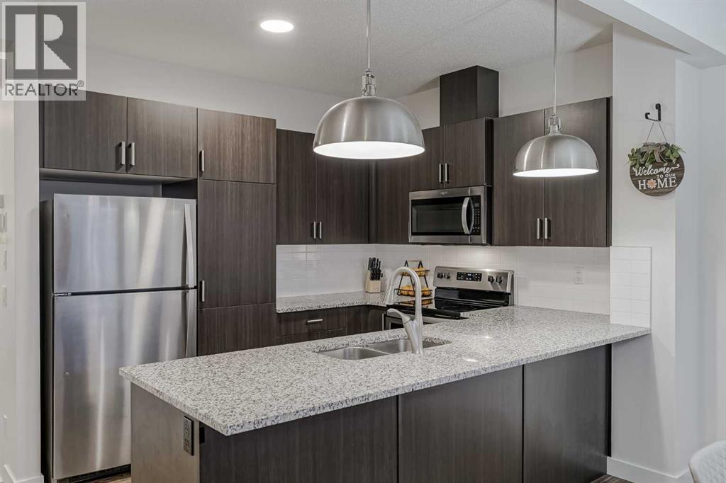 This beautifully designed townhome stands out from the rest — offering true main-floor living where your kitchen, dining, and living areas are all on the same level you enter from the garage. No stairs to climb just to reach your main living space! Step inside to discover an inviting open-concept layout featuring 9-foot ceilings, stylish lighting, and a seamless blend of tile and laminate flooring. The modern kitchen shines with stainless steel appliances, granite countertops, subway tile backsplash, and a convenient breakfast bar — perfect for morning coffee or casual dining. The adjoining living and dining areas flow effortlessly to a sunny, south-facing patio, ideal for relaxing or entertaining. A guest powder room and direct garage access complete this thoughtfully designed main level. Upstairs, you’ll find two exceptionally spacious bedrooms, each featuring its own private ensuite bathroom and walk-in closet — perfect for guests, roommates, or a dual-owner setup. The laundry area is conveniently located on this level for everyday ease. The fully finished basement adds even more living space with a large recreation or family room — perfect for movie nights, a home gym, or office setup. With quick access to Stoney Trail, Macleod Trail, and nearby communities like Walden, Legacy, and Shawnessy, you’re just minutes from shopping, dining, schools, and all major amenities. This is one of the few townhomes that truly offers main-floor living — blending modern comfort, functionality, and a low-maintenance lifestyle all in one. (id:53676)