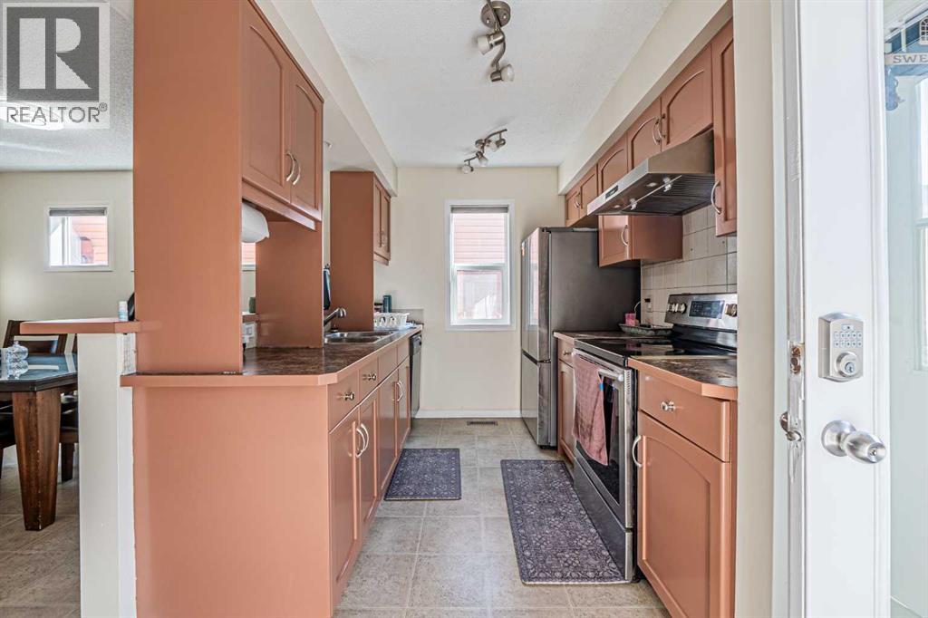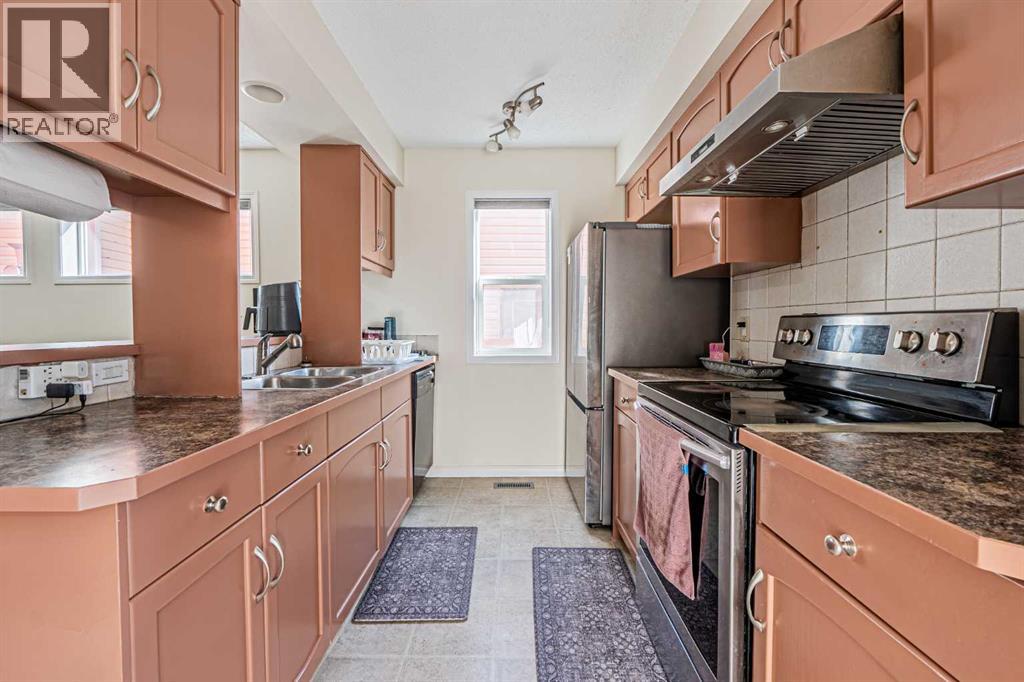 Welcome to this beautifully maintained 1,442.97 sq. ft. home in the sought after community of Saddle Ridge, with an additional 650 sq. ft. of developed basement space, offering a total of 4 bedrooms and 3.5 bathrooms. This charming property features an oversized detached double garage, a fully fenced yard and a gorgeous deck perfect for entertaining. The landscaped backyard with back alley access adds both beauty and convenience. Inside, the home has been freshly painted and is move-in ready. Ideally located just steps away from schools, parks, grocery stores, bus stops and other amenities, this home combines comfort, style and a prime location—perfect for families or anyone seeking a well-kept property in a desirable neighborhood. Book your private showing Today! (id:53676)