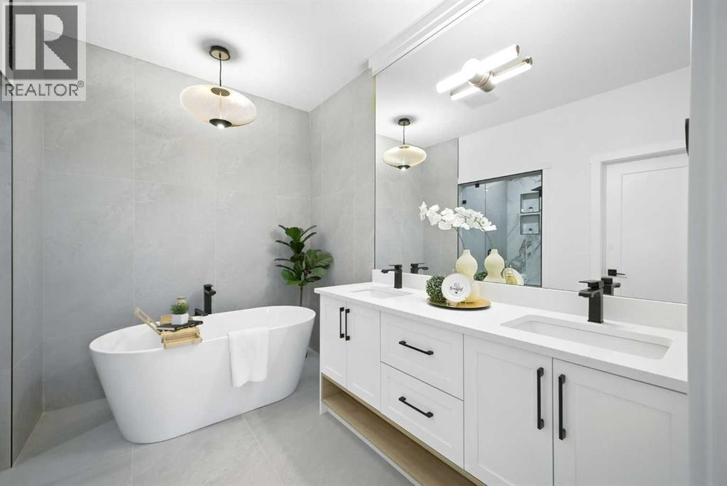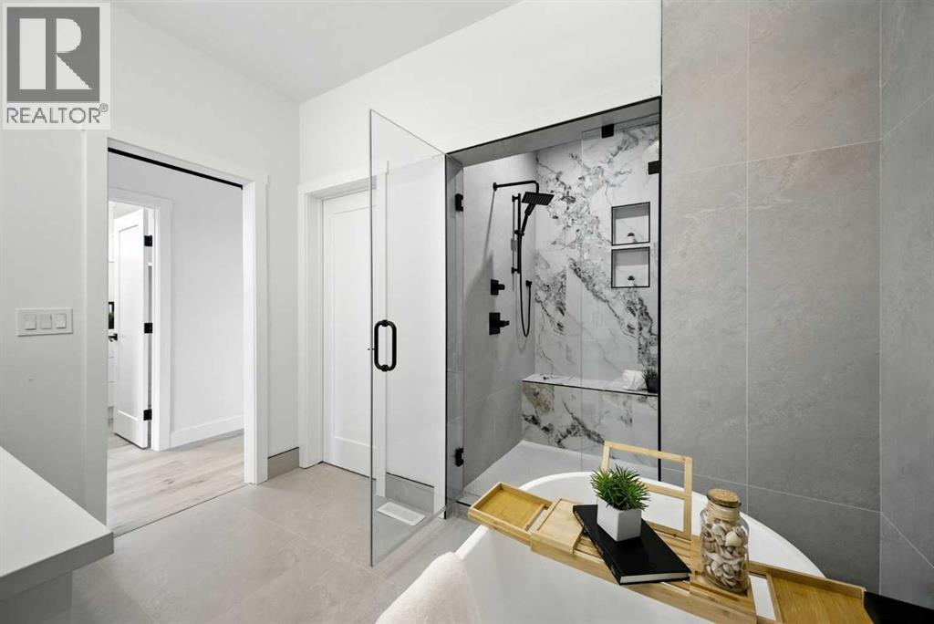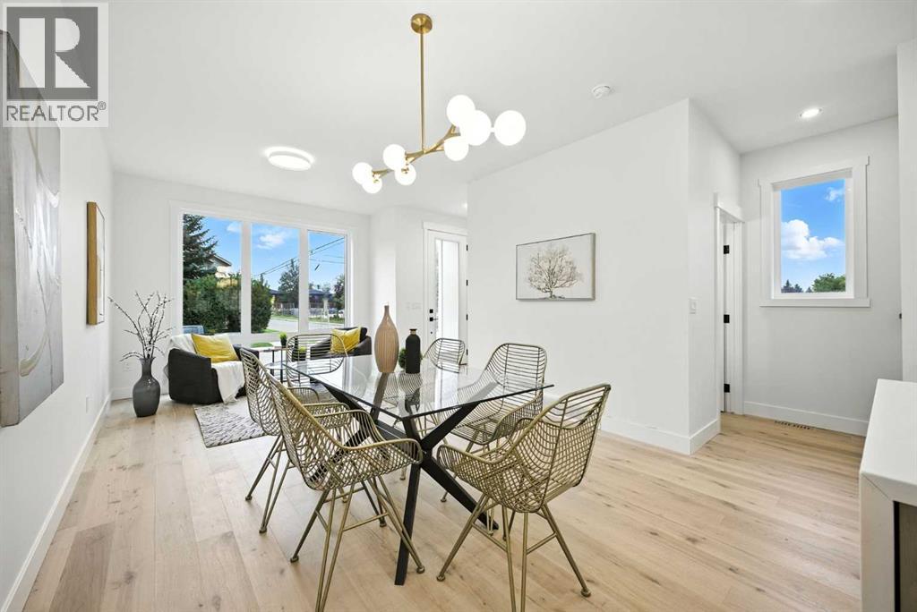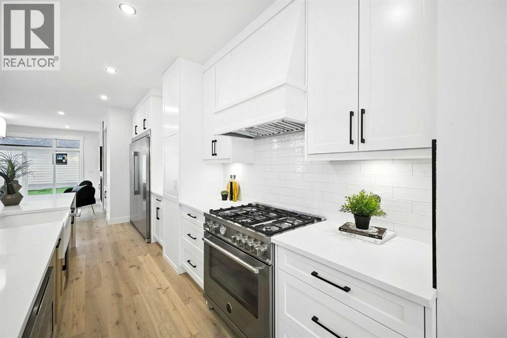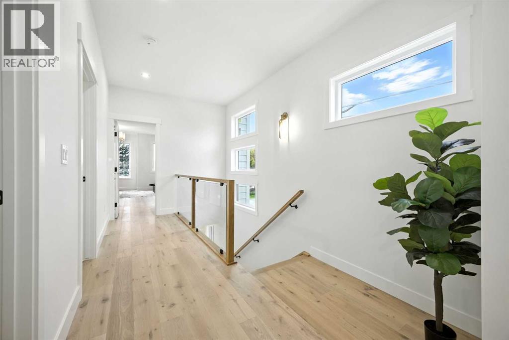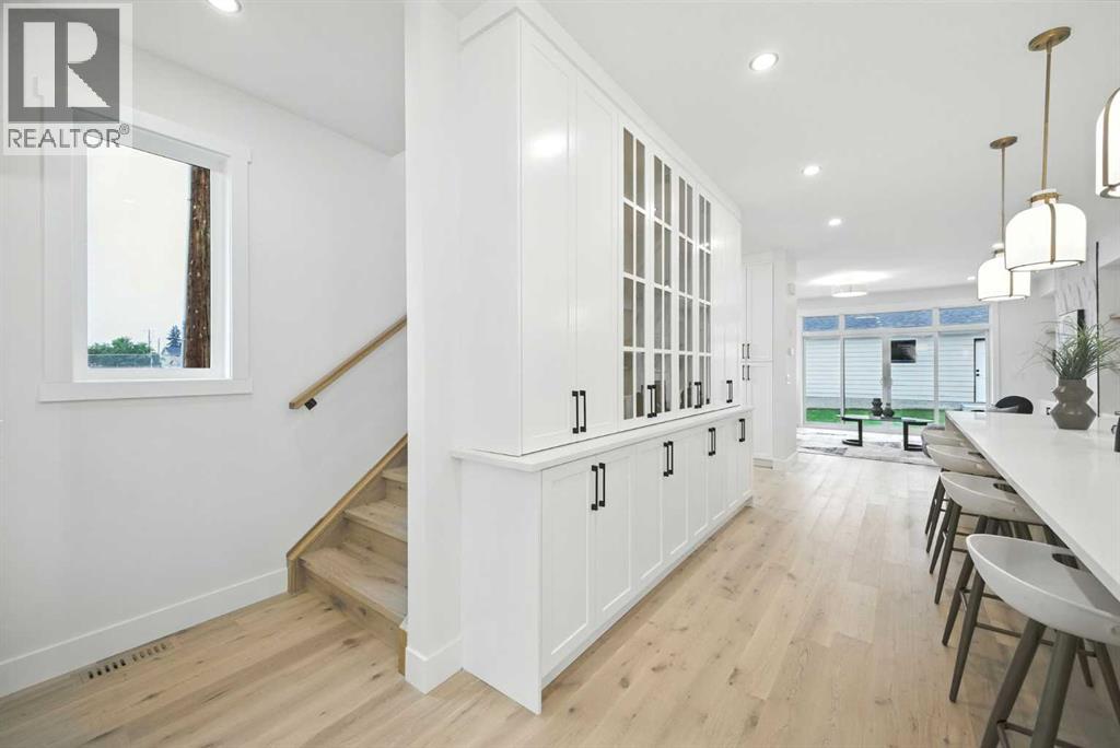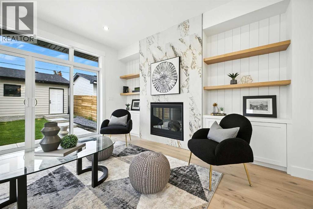 Welcome to this stunning, newly built residence offering over 2,800 sq. ft. of thoughtfully designed living space in the heart of Mount Pleasant. Ideally situated on a coveted corner lot across from the school and surrounded by professional landscaping, this home perfectly balances style, function, and location. With a striking modern design, the home showcases clean architectural lines, abundant natural light, and effortless indoor-outdoor flow. The open-concept main floor is both inviting and sophisticated, featuring engineered hardwood floors, a sleek gas fireplace with custom built-ins, and expansive windows that flood the space with sunlight. The chef’s kitchen is a true centerpiece—equipped with quartz countertops, a waterfall island, premium appliances (including an oversized refrigerator), a walk-in pantry, and ample built-in storage. Oversized sliding doors open to a private backyard retreat, complete with a concrete patio, green space, and access to the double detached garage. Upstairs, the luxurious primary suite offers a serene escape, complete with an electric fireplace, custom walk-in closet, and a spa-inspired ensuite featuring a steam shower, heated floors, and a freestanding soaker tub. Two additional bedrooms, a full bathroom, and a conveniently located laundry room complete the upper level. The fully finished basement expands your living options with a spacious rec room, wet bar with wine fridge, a dedicated home gym, a fourth bedroom, and a full bathroom—perfect for entertaining or welcoming guests. Located just minutes from Confederation Park, the Mount Pleasant Sportsplex, top-rated schools, playgrounds, and with quick access to downtown, this home offers the perfect blend of modern comfort, refined design, and inner-city convenience. A rare opportunity to own a truly exceptional home in one of Calgary’s most desirable neighborhoods. (id:53676)