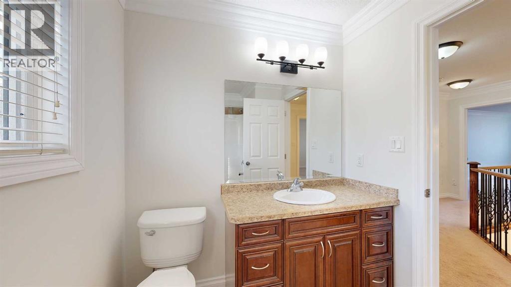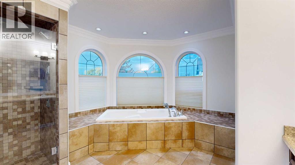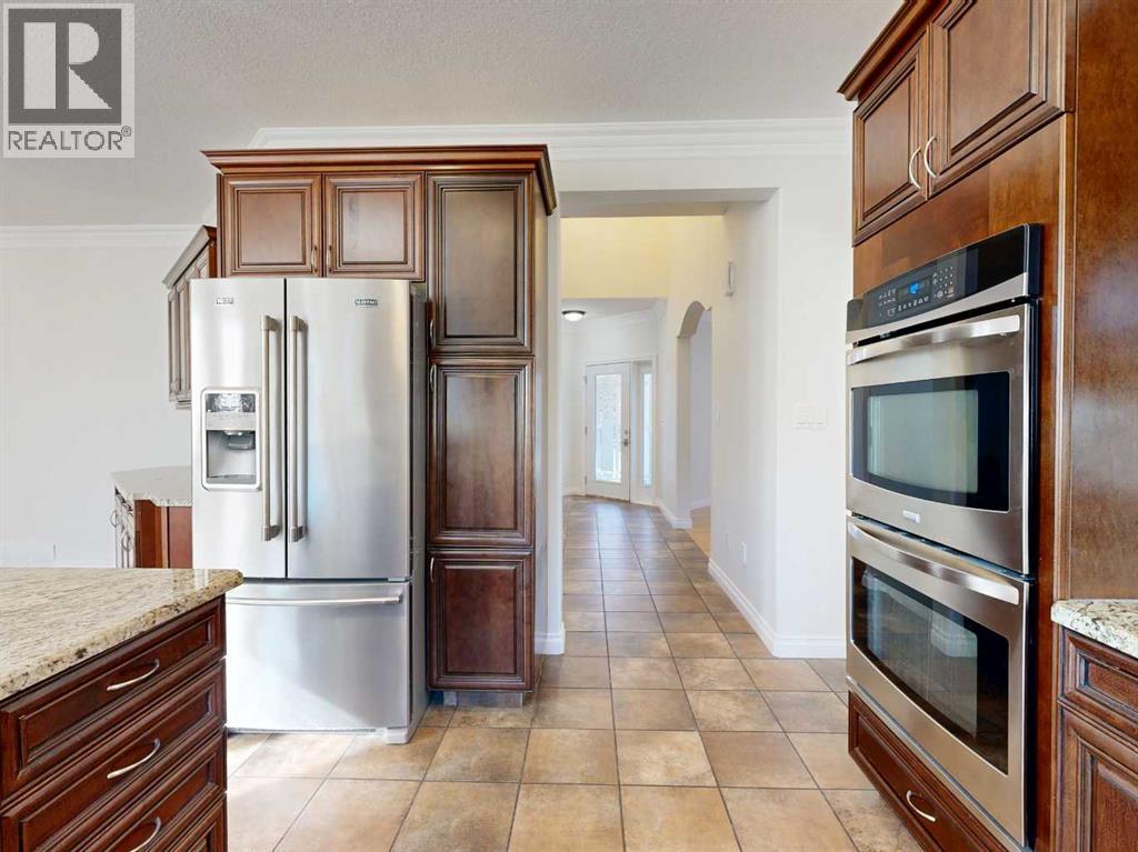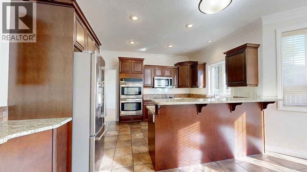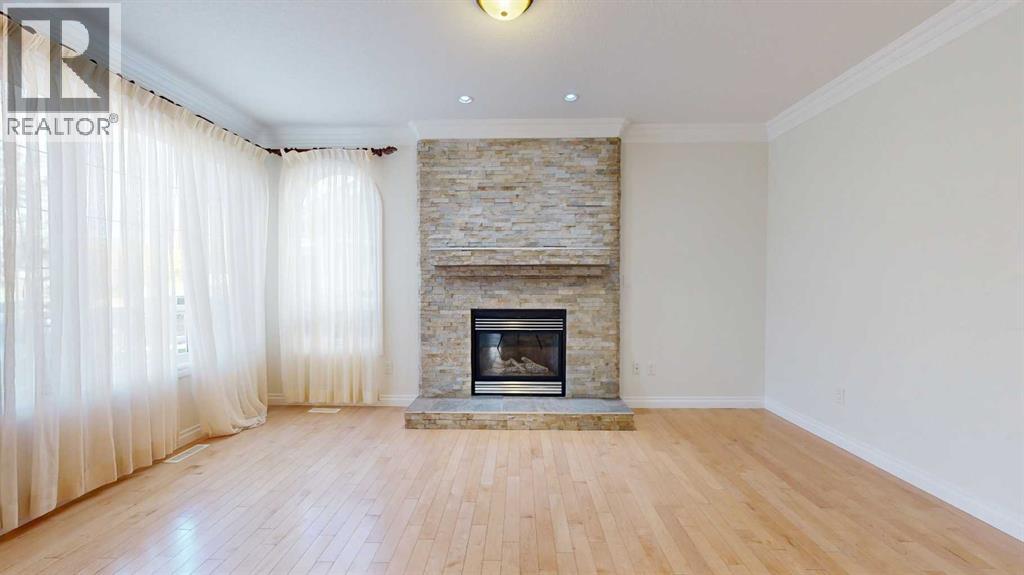 Prepare to be captivated by this exquisite, custom-built residence offering 2,200+ sq ft of unparalleled elegance and comfort in the sought-after community of Wedgewood. Step through a regal entrance featuring a stunning tiled foyer and a dramatic staircase highlighted by an intricate wrought iron railing. The main level invites relaxation and entertaining with a formal living room centered around a cozy gas fireplace and showcasing hardwood flooring.The heart of the home is the chef's kitchen, a culinary dream equipped with: granite countertops, two built-in wall ovens, flat top stove, sleek under-cabinet lighting, practical eating bar, and stainless steel appliances.An adjacent, bright dining area flows seamlessly through to the large deck and backyard, perfect for memorable gatherings. Convenience is key with valuable main floor office space, a dedicated laundry area with sink & ample countertops and separate, 2- piece powder room.Ascend to the upper level to discover the lavish primary bedroom, a true sanctuary featuring its own gas fireplace for a touch of romance. The suite includes a huge walk-in, customized closet offering exceptional storage and organization. The accompanying luxurious spa-inspired ensuite offers the ultimate in relaxation with a jetted tub, a tiled, jetted shower, double sinks and a private water closet. Main bathroom, hall closets and three spacious additional bedrooms complete the upper floor, providing ample space for family or guests.The fully developed basement is an entertainer's paradise, boasting a stylish entertainment bar, large, private fifth bedroom with a roomy closet, and well-appointed full bathroom.For year-round comfort, both the basement and the oversized double garage feature in-floor heating. For the summer heat, there is air conditioning to help you stay cool. Interior was just freshly painted making it truly move-in ready. This home isn't just a house; it's a lifestyle, offering grandeur living at a truly reas onable price. Don't miss the chance to make it yours! (id:53676)