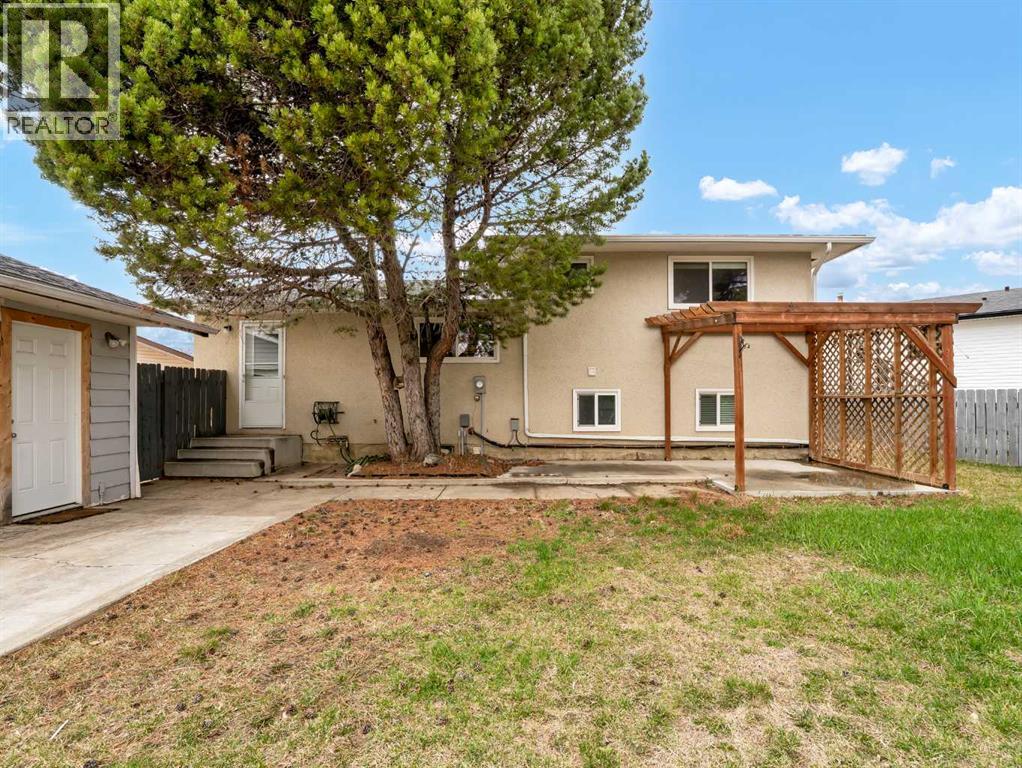 Wonderful family home in great court location in the Connaught area near paths, parks and central to many other amenities! This great 4 level split offers 3 bedrooms up, a bright 4 piece bathrooms and a master bedrooms with a 2 piece ensuite. The main floor has bright natural light and boasts a functional kitchen space with ample counter space including seating off the peninsula, and open flow to your dining that circulates into your large front living room area. Off the back of the home there is a small boot room space and access out to your private backyard. The third level offers a bright, spacious family room with a great flex nook perfect for a kids play area, desk station, yoga and workout space to name a few great uses and is finished off with an updated 3 piece bathroom. The 4th level is home to a 4th bedroom, a den, great storage space and the laundry/utility room. Out back enjoy the multiple patio spaces each offering different vibes, ample space to make your own or let the kids run free. The front and back yard are equipped with manual underground sprinklers, while the lengthy front drive duals as RV parking and access to your 22x24 detached garage. Brand new roof, just completed. (id:53676)
