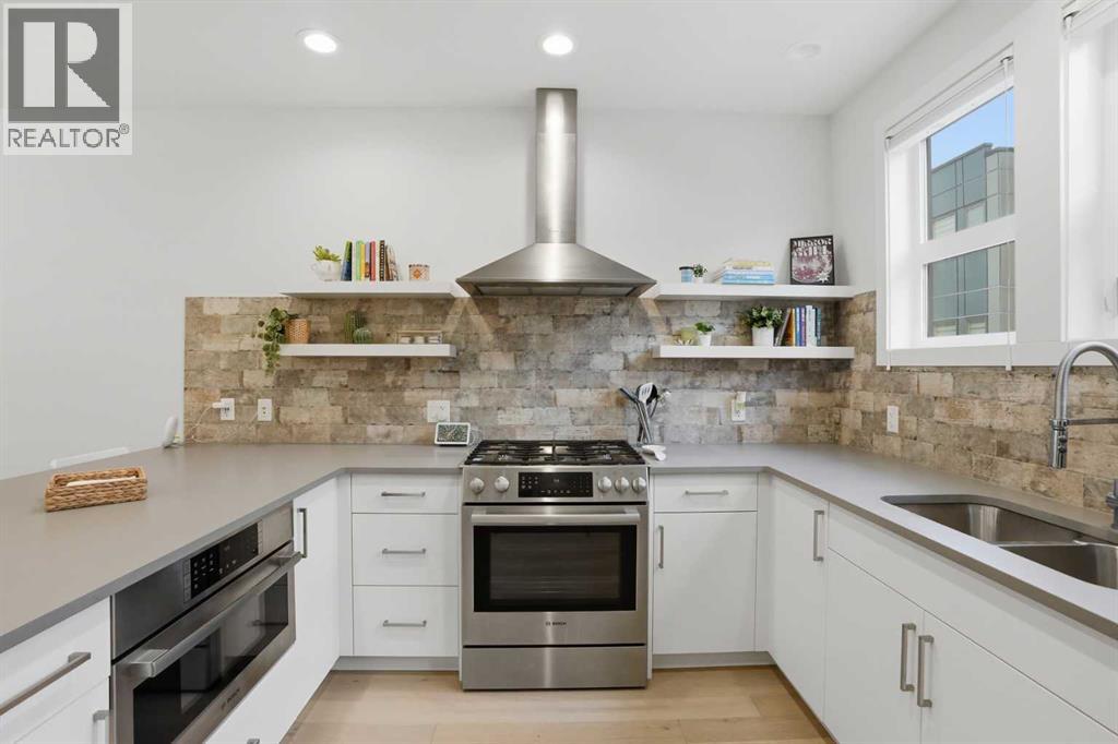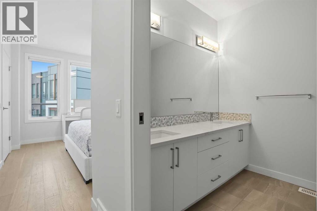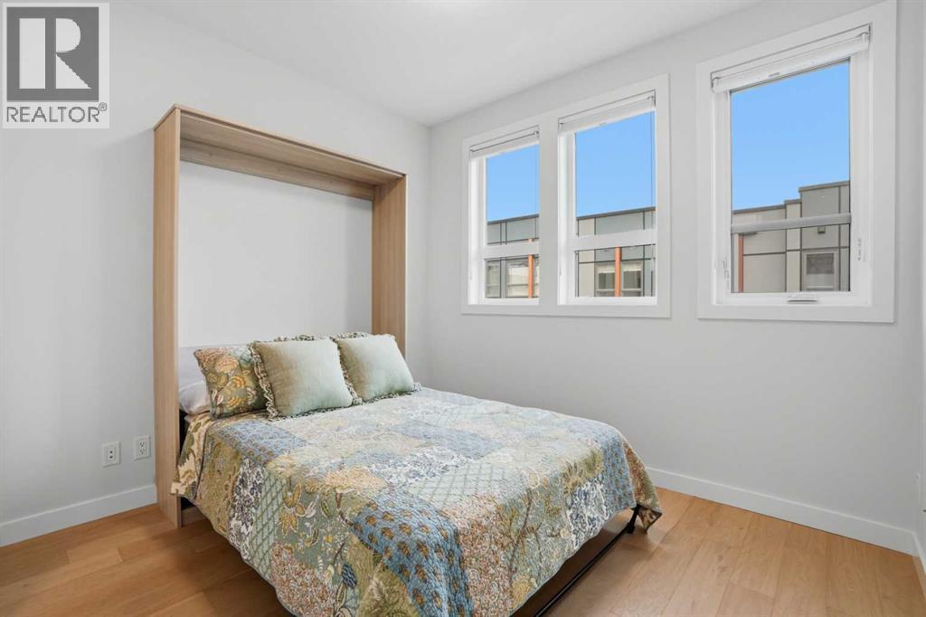 Discover this exceptional south-facing townhouse located in the heart of the University District, in Varsity one of NW Calgary's most desirable communities. Boasting upgraded contemporary finishes and engineered hardwood flooring throughout the main and upper levels. This home offers both style and comfort. Enjoy picturesque views of the expansive courtyard, complete with green space, a community garden, and a playground—perfect for relaxation and recreation. The inviting main entry features a sun-drenched south-facing patio, while the open-concept main floor is flooded with natural light from large windows and a private South facing balcony. Custom blinds add a touch of elegance throughout. The sleek, modern kitchen is ideal for entertaining, featuring ample cabinetry, stunning quartz countertops, and upscale stone back splash , stainless-steel appliances (including a gas range), a walk-in , pantry, and a built-in pantry for extra storage. Upstairs, you’ll find two spacious bedrooms, each with its own ensuite bathroom. The second bedroom includes a built-in queen Murphy bed, maximizing space and versatility. A separate laundry room completes the upper level. With so many premium upgrades, this home is equipped with air conditioning, Hunter Douglas window coverings, epoxy garage flooring, central vacuum, and enhanced hardwood flooring. The secure, double attached tandem garage offers generous storage, epoxy floors, and a wall of built-in cabinets. Step outside your front door to find the University campus, Foothills and Children’s Hospitals, as well as the Market Mall with a vibrant selection of shops, cafes, restaurants, pubs, boutiques, grocery stores, and a movie theatre—all just moments away. This property shows like new and presents a rare opportunity to live in one of Calgary’s most dynamic and sought-after neighborhoods. Don’t miss your chance to call the University District home! (id:53676)