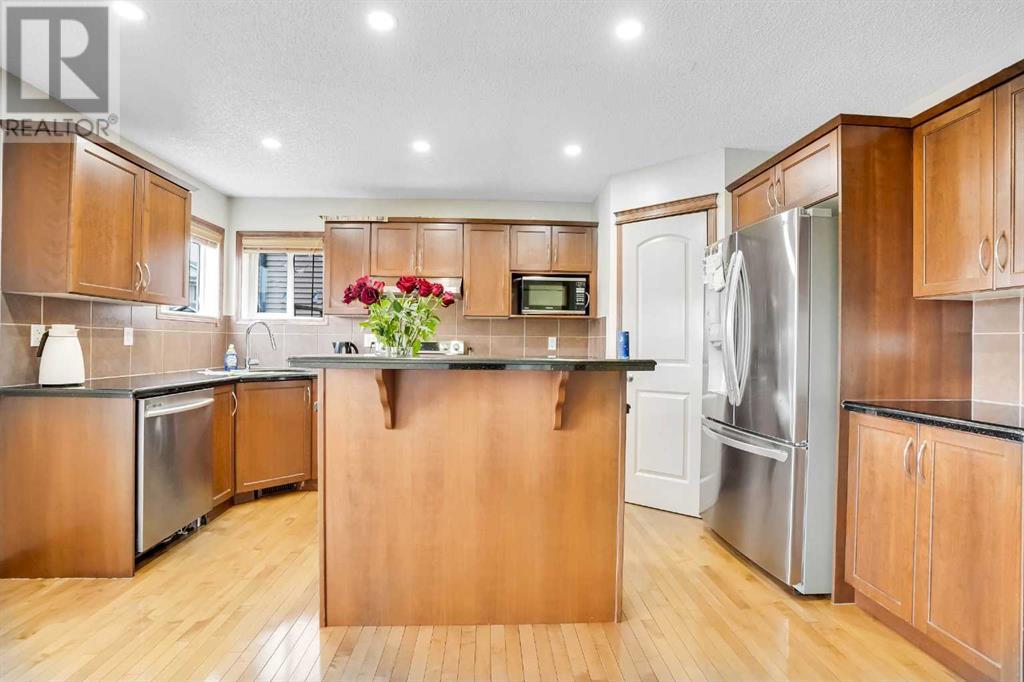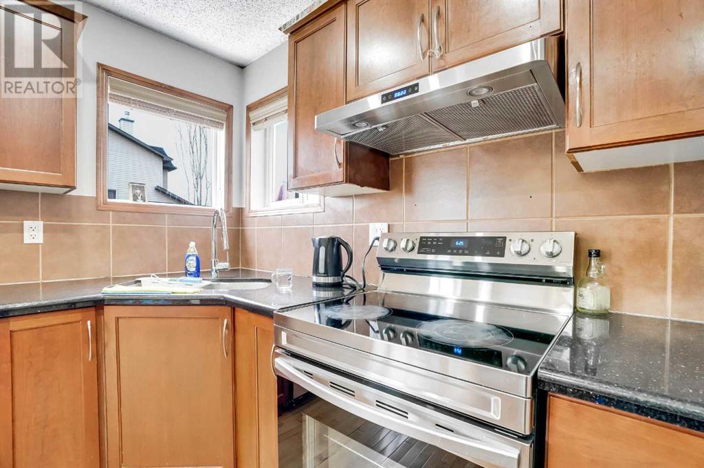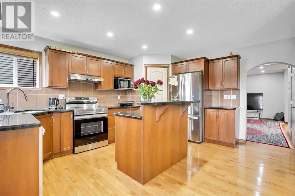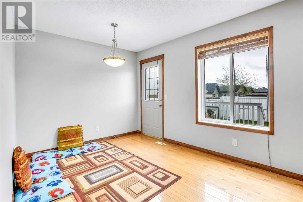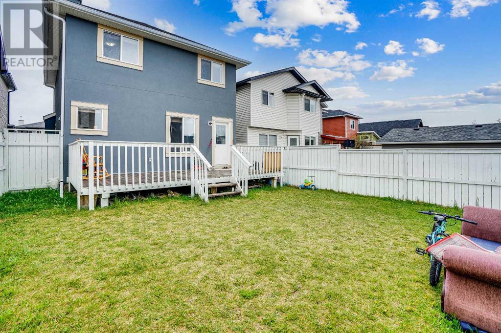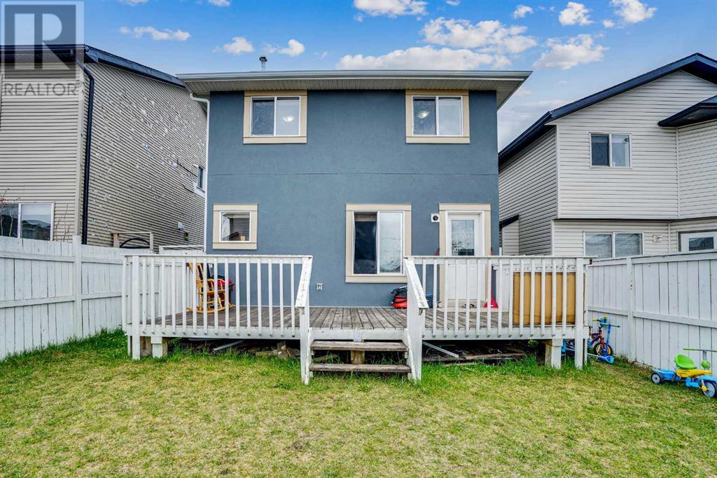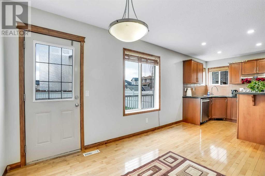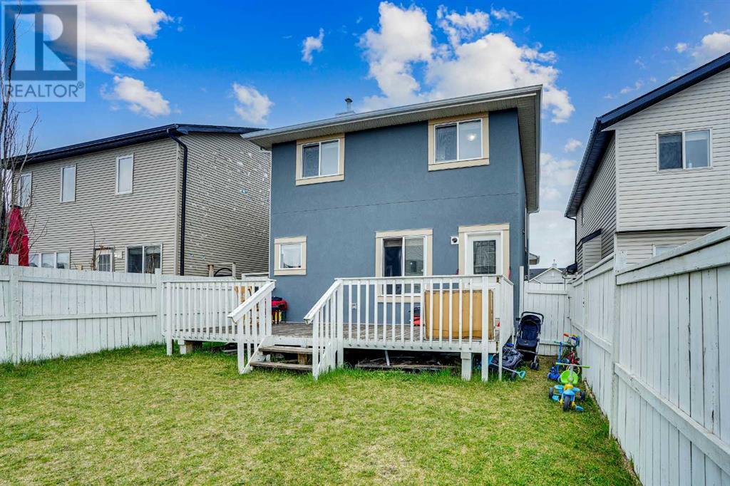 Welcome to this beautifully maintained two-storey detached home with an ATTACHED DOUBLE GARAGEStep inside to discover an open-concept main floor featuring gleaming HARDWOOD floors, a spacious and inviting family room with a cozy gas fireplace, a bright breakfast nook, and a stylish kitchen equipped with GRANITE countertops and STAINLESS STEEL APPLIANCES.Upstairs, you’ll find a generous primary bedroom complete with a 4-PIECE ENSUITE that includes a JETTED TUB and a large WALK-IN CLOSET. The upper level also offers two additional well-sized bedrooms and a 4-piece main bathroom.The illegally suited basement has a SEPARATE SIDE ENTRANCE and has with egress windows. It features a MODERN kitchen with granite countertops and backsplash, a full bathroom, one bedroom, and its OWN LAUNDRY facilities.Exterior highlights include durable stucco siding, a private backyard with a FULLY FENCED and landscaped yard, and a BACK PATIO perfect for outdoor enjoyment.Located close to schools, parks, grocery stores, the Genesis Centre (with library and YMCA), as well as convenient access to Stoney Trail, Calgary International Airport, bus stops, and the train station. A wonderful place to call home in a highly accessible community! (id:53676)