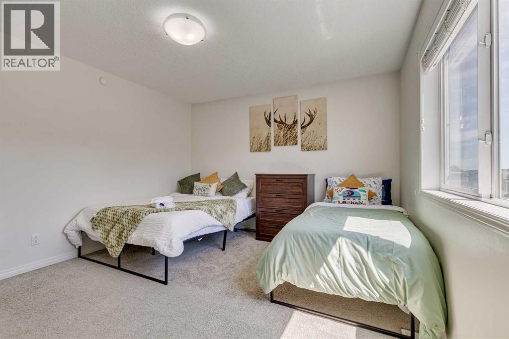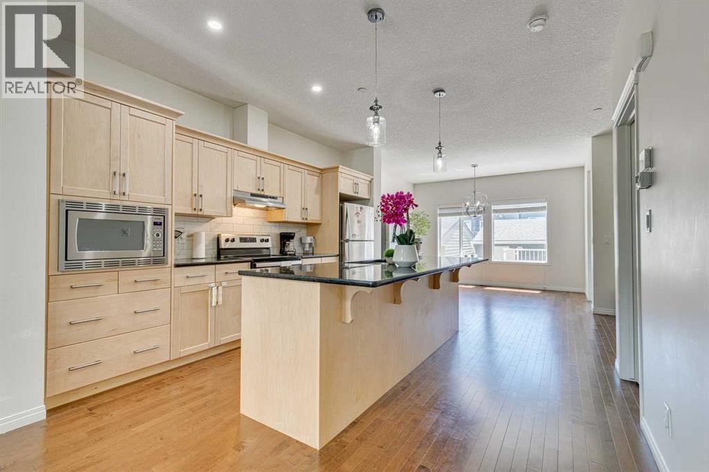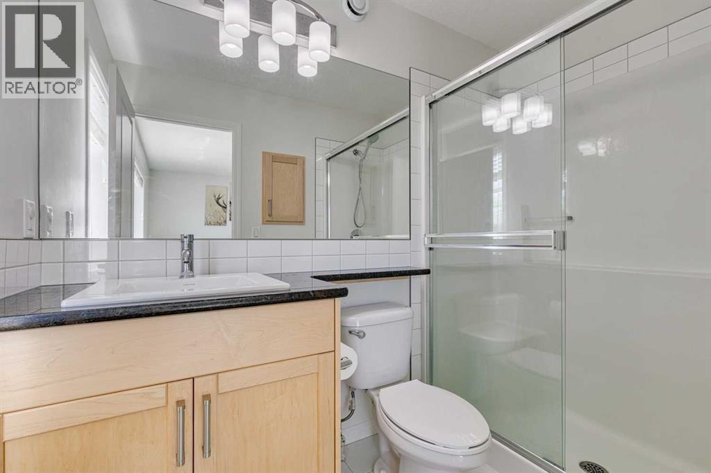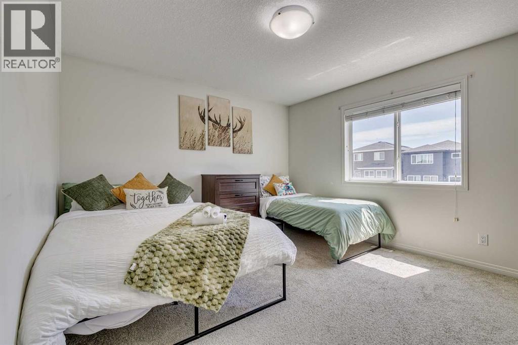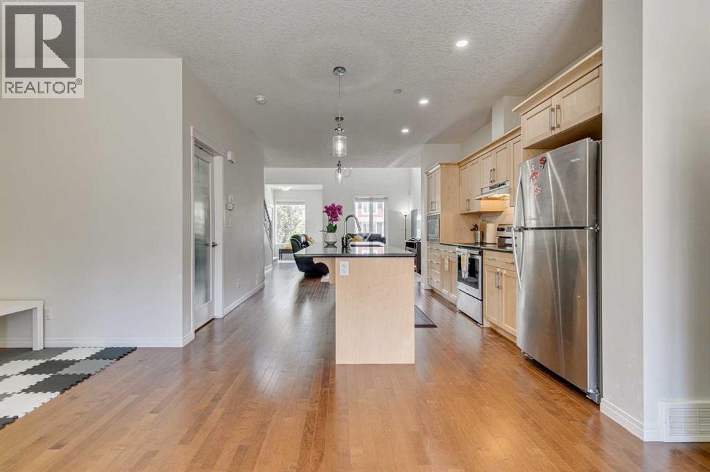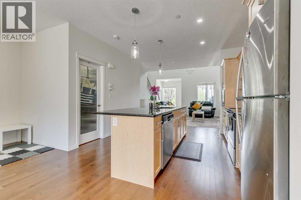 Welcome to this inviting and well-maintained home, offering fantastic curb appeal with a charming front yard that sets the tone for what’s inside. Step through the front door into a spacious foyer with a large closet, perfect for storing coats and shoes. The main floor features an airy living room with soaring ceilings open to above, hardwood floors, and tile for easy upkeep. The kitchen is a chef’s delight with stainless steel appliances, a built-in microwave, a breakfast bar, and a walk-in pantry. The sunny, south-facing dining area fills with natural light, and a convenient powder room completes the main level.Upstairs, you’ll find three comfortable bedrooms, including a primary retreat with a 3-piece ensuite, and a well-appointed 4-piece bathroom to serve the additional bedrooms. The basement is unfinished and ready for your personal vision—ideal for adding value and extra space.Enjoy outdoor living in the backyard, which features a good-sized deck, privacy partitions, low-maintenance landscaping, and convenient back alley access. Located within walking distance to the vibrant Livingston Hub and HOA amenities, and just minutes from Stoney Trail and Deerfoot Trail for a quick commute across the city, this home offers the perfect blend of comfort, convenience, and community living. (id:53676)
