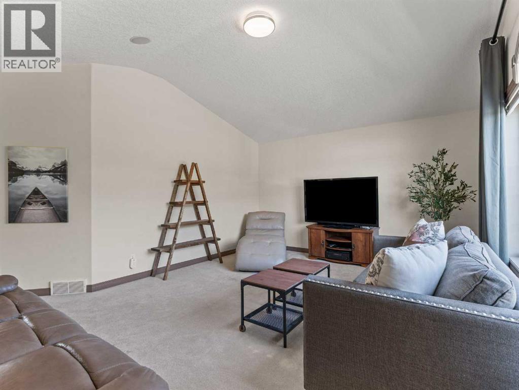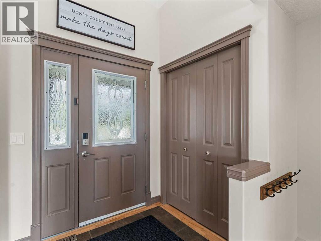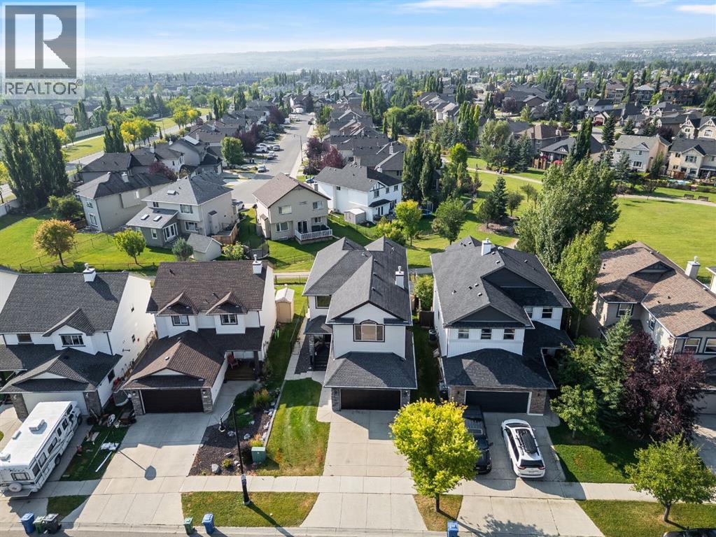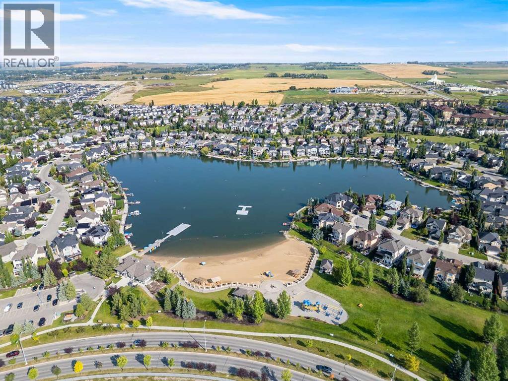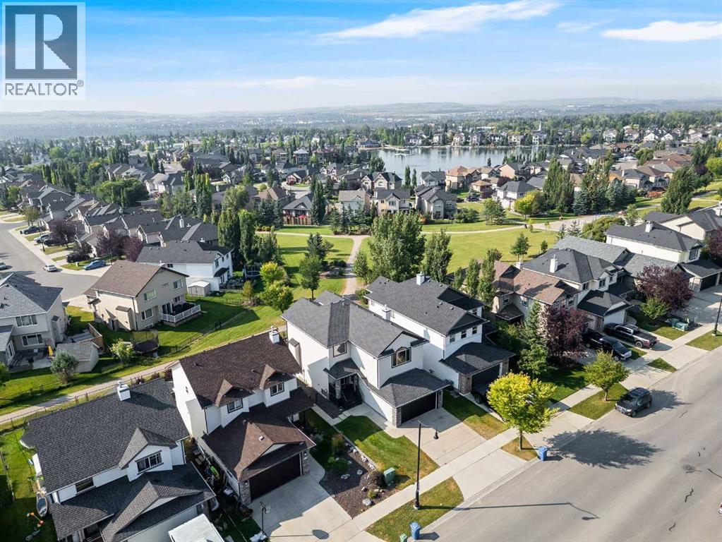 Welcome to this fully finished walkout 2-storey offering over 3,000 sq ft of living space designed for both comfort and lifestyle. Complete with air conditioning, a large garage, and a setting that backs onto greenspace and walking paths with mountain views and a park nearby, this home truly has it all. You’ll also enjoy exclusive lake access with year-round activities—swimming, fishing, paddle boarding, volleyball, basketball, and barbecues in the summer, plus skating in the winter. Add in a great school district and quick access to Calgary, just 15 minutes to South Calgary, and the location checks every box. Inside, you’re greeted by a grand entrance, where the main floor features 9-ft ceilings and hardwood flooring. A front office makes working from home easy, while the open living area offers a gas fireplace and large windows for natural light. The kitchen showcases a big island, dark stainless appliances, and flows to the dining area with access to a back deck where you can enjoy the greenbelt behind you. Upstairs you’ll find a vaulted bonus room and three bedrooms, including a large primary suite with mountain views, a walk-in closet, and a spa-inspired ensuite with a jetted tub, walk-in shower, and dual sinks. The fully developed basement adds even more living space with a big bedroom, full bathroom with shower, a wet bar with cabinets, and a large open rec space that walks out to the backyard. This home blends lifestyle, location, and family-friendly features in one complete package. Call your favourite Realtor to book your private showing—homes like this don’t last long! (id:53676)