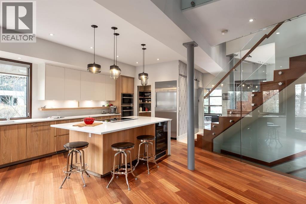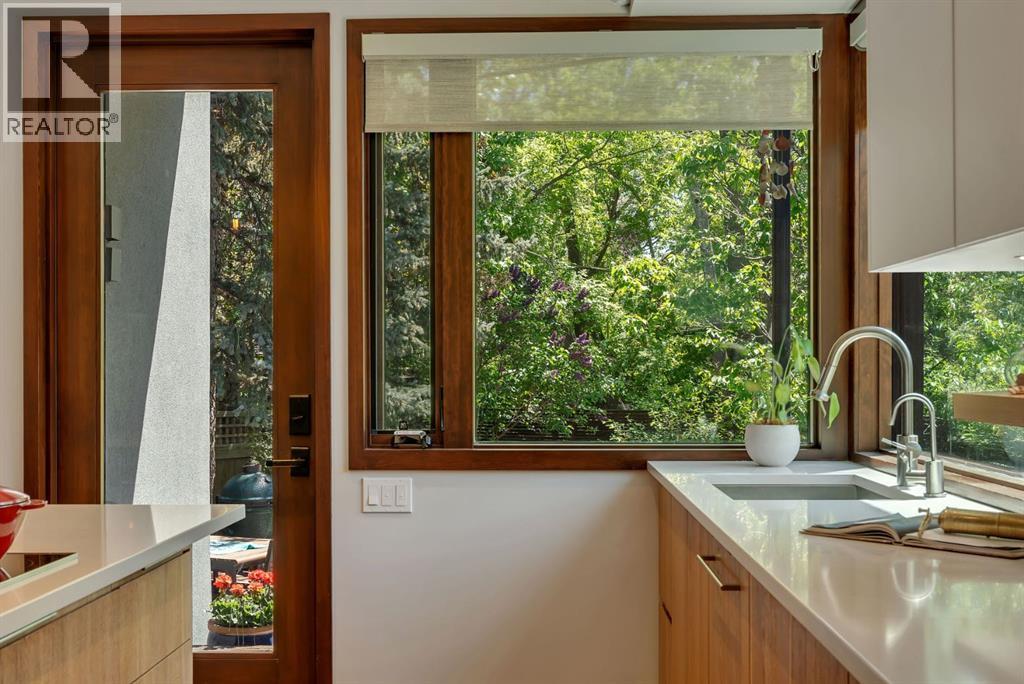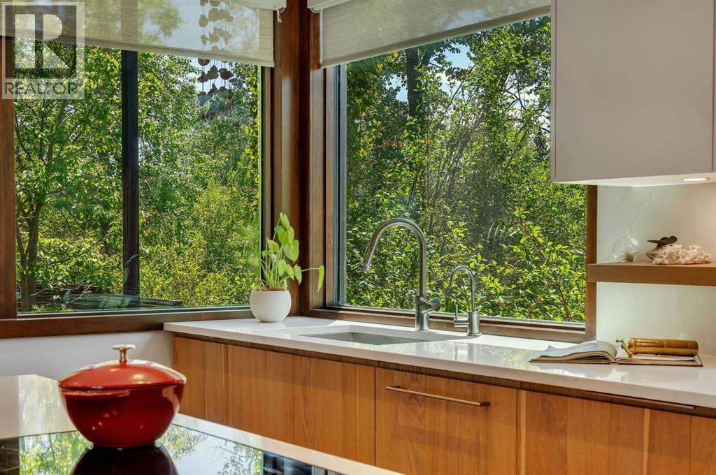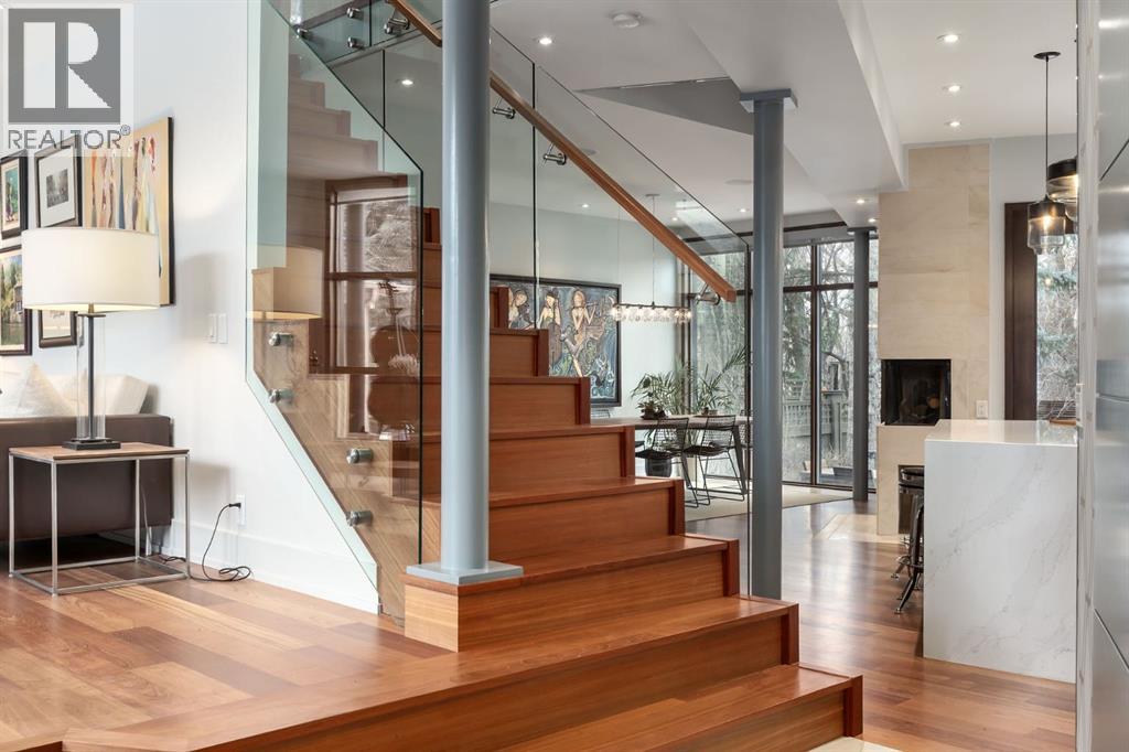 Opportunity awaits - Nestled along Rideau Road, this rare offering combines history, nature, and modern luxury— in a rare river & park adjacent location. Opportunities like this in Rideau Park are few and far between, making this home a truly one-of-a-kind find.Inside, Brazilian cherry hardwood floors set the tone for timeless elegance. The main floor is designed for both connection and privacy, with a central glass staircase anchoring the layout. Enjoy the front library/den, an elegant living room, or dining with a view of the trees.The Porcelanosa kitchen is a showpiece—flooded with natural light and overlooking the park and river. Outfitted with a full Miele appliance package, induction cooktop with hidden hood, beverage center, walk-in pantry, and Porcelanosa finishes, it’s both functional and striking. A floor-to-ceiling window and wood-burning fireplace create a warm dining atmosphere.Upstairs, the southwest-facing primary retreat offers vaulted ceilings, a private balcony with river views, spa-like ensuite with natural stone, walnut cabinetry, heated floors, soaker tub, walk-in shower, and custom wardrobe system. Two additional bedrooms complete this level—one with cheater ensuite and steam shower, the other with rare river views.The finished basement includes a gym, rec room, 4th bedroom, full bath, laundry with sink, storage, and access to the front attached garage.The backyard flows seamlessly into one of Calgary’s most scenic parks, with the Elbow River Pathway just outside your door. Whether for morning jogs or evening strolls, this location is unmatched for lifestyle and connection to nature.Rooted in legacy, Rideau Park is one of Calgary’s most prestigious communities, once home to CHCT-TV’s first studios. Rarely do homes of this caliber on Rideau Road come to market—this is more than a home, it’s a once-in-a-generation opportunity to own a piece of Calgary’s history in an irreplaceable location. (id:53676)