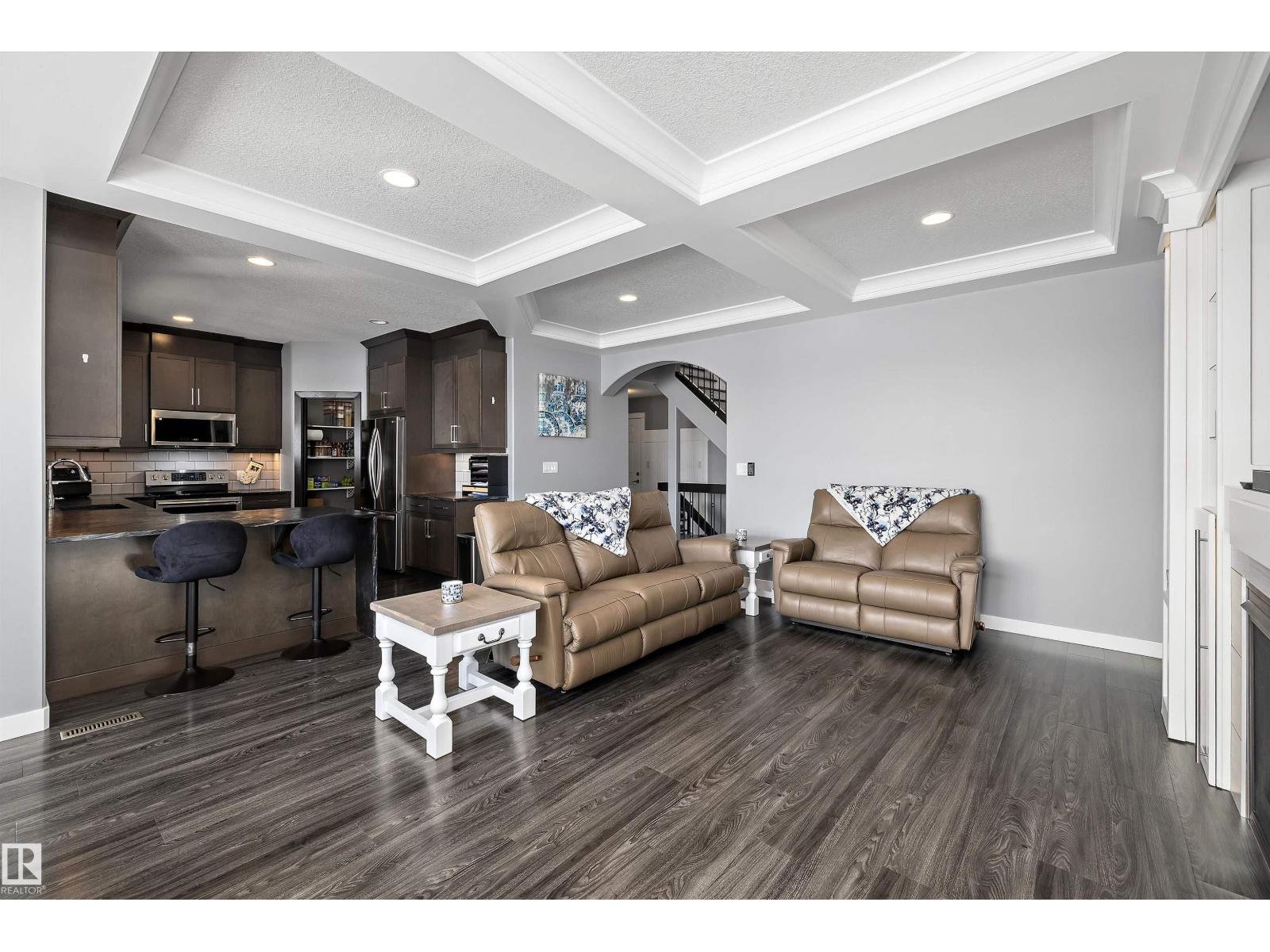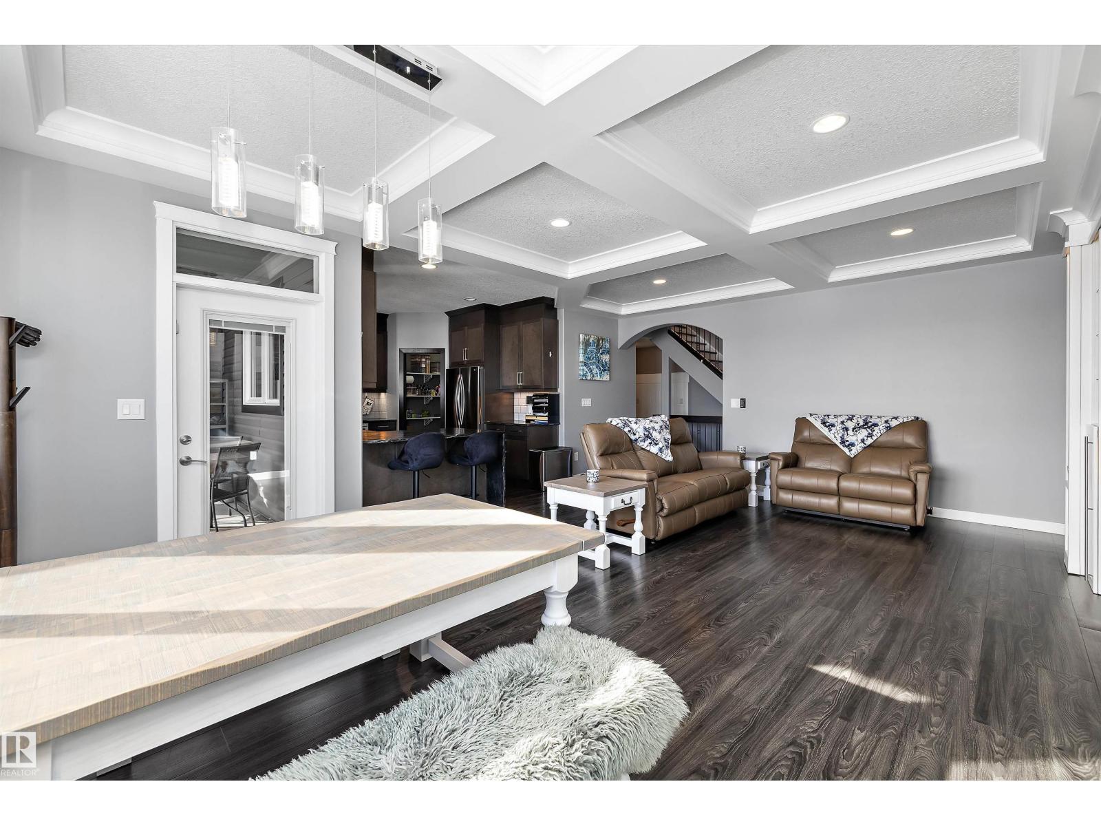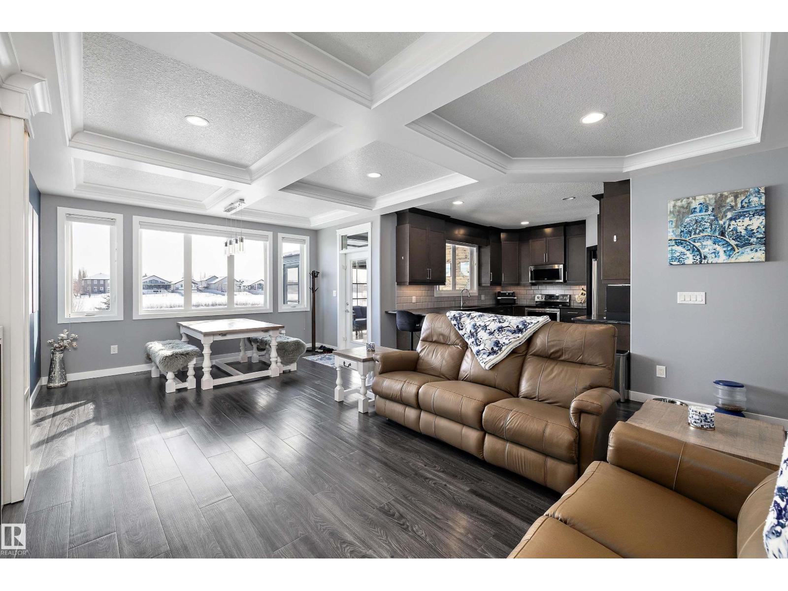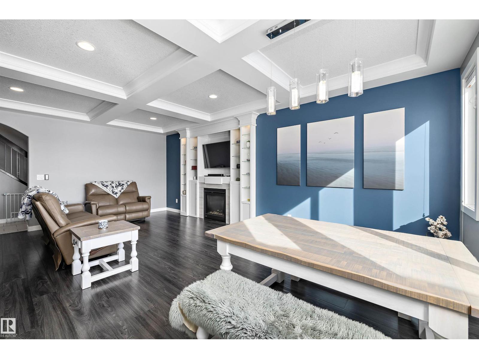 LAKEFRONT LUXURY | FULLY FINISHED | 4 BEDROOMS UP!!! Stunning lake-backing home by Atlas Premium Homes, known for exceptional quality and craftsmanship. Featuring 9’ ceilings and a bright open-concept main floor with coffered ceilings, custom gas fireplace, luxury granite, and a massive walkthrough butlers pantry—all w/breathtaking lake views. Upstairs offers a spacious bonus room w/balcony overlooking the lake, a beautiful primary suite, 3 additional bedrooms, dual-sink main bath, and a large laundry room. The fully finished 9’ basement adds extra living space. Upgrades include A/C, 20 solar panels(transferrable warranty), Enclosed 3-Season Sunroom overlooking lake w/epoxy floor, engineered hardwood upstairs(2022), fresh paint (2023), newer appliances, irrigation system, vinyl fencing, and professional stone landscaping w/turf so no mowing grass. Heated, finished garage with epoxy floors, TV setup, and 220V power. Quiet location steps to parks and trails—this meticulously maintained home shows 10/10. (id:53676)