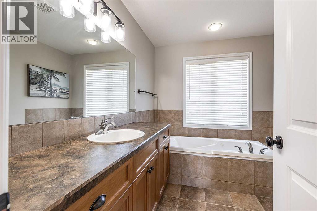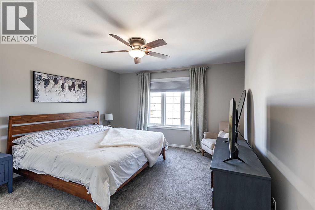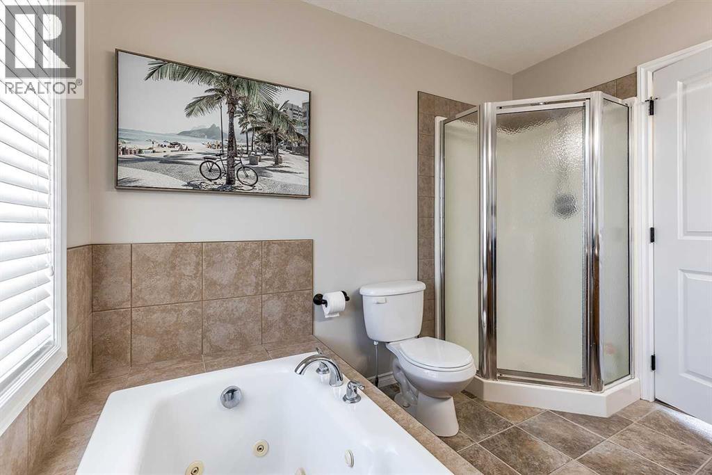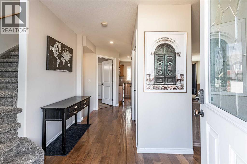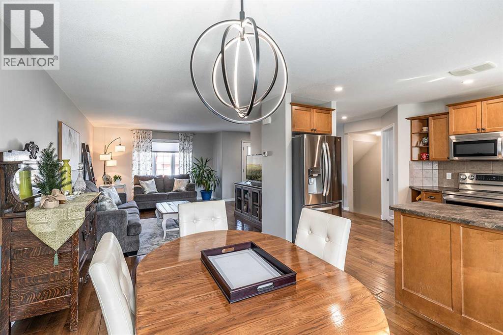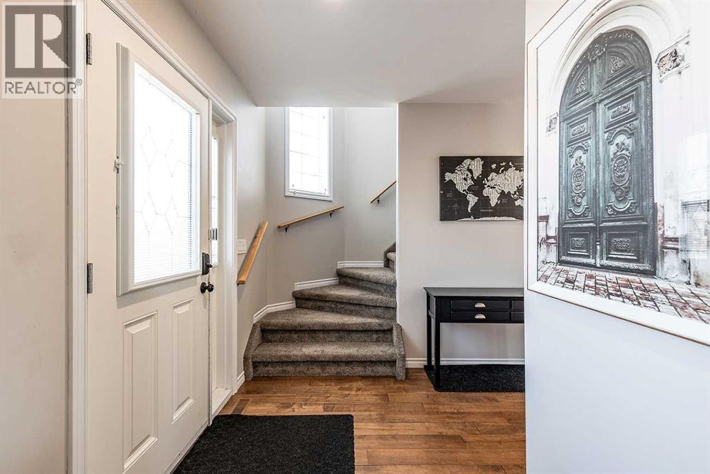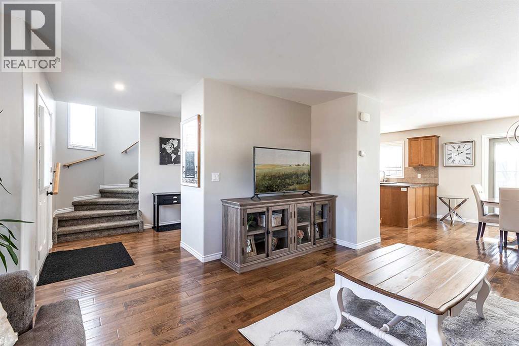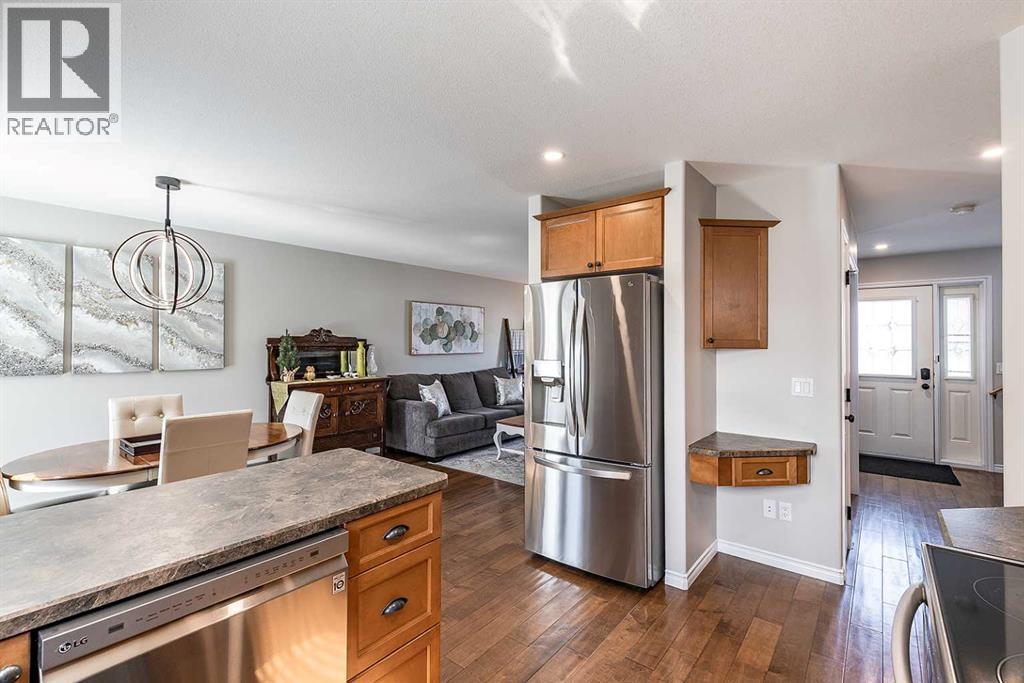 Welcome to Ranchlands — where this move-in ready home checks every box. Hardwood floors, flooded with natural light from oversized main floor windows, set the tone the moment you walk in. The kitchen is built for real life with plenty of maple cabinetry, generous counter space, and updated appliances (2021). A convenient powder room with in-suite laundry (washer/dryer 2021) and direct backyard access round out a main floor that just works. Upstairs, three well-sized bedrooms offer comfort and flexibility. The primary bedroom fits a king with room to spare. The main bath is a standout with a jetted soaker tub, separate shower, and more space than you'd expect. The lower level is where this home truly steps ahead: a fully finished, permitted basement with a 3-piece bathroom ready for a family room, home office, or gym. Out back, a private deck with gazebo (2021) overlooks a fully sodded yard (2022) with enough room for a future garage or RV pad, a rare find in an established neighbourhood. Additional updates include a new hot water tank (2022). This one is priced to move and built to impress. (id:53676)