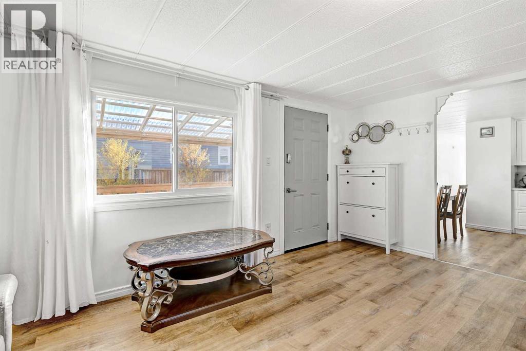 Unbeatable Value! Fully Renovated Manufactured Home on Its Own LandDon't miss out on this exceptionally well-cared-for manufactured home located on a spacious, owned lot in an established Grande Prairie neighborhood Crystal Ridge. Offering an incredible combination of modern updates, functional living space, and an amazing yard, this property is a fantastic value for the price!Over the last five years, this home has undergone extensive, high-quality renovations designed to last for years to come. Move-in with confidence, knowing all the major and cosmetic work has been expertly completed!Key Home & Property Features:Modern Interior Living:Three Bedrooms & 1.5 Baths: A well-designed floor plan features a private master suite with a convenient half-bath at the front and two additional bedrooms and a full bath at the back.Brand New Kitchen: Enjoy a full, modern kitchen complete with all new appliances.Full Renovations: Updates include new flooring, doors, light fixtures, and both bathrooms.Mechanical Peace of Mind: Major upgrades include a new furnace and hot water on demand system. The home has also been recently leveled.Stunning Exterior & Yard:Fully Updated Exterior: The home features a new roof, windows, and siding.Oasis Backyard: Step out into a large, beautiful yard featuring brand new fencing, a covered deck with a heavy-duty Suntuf upgraded polycarbonate roof, and mature landscaping.Gardener's Delight: Enjoy fresh produce from your raised garden beds and several fruit trees, including two apple, three cherry, 2 crab apple and one plum tree.Storage & Parking: The property includes two large sheds on stable foundations and a three-car cement parking pad. A play structure is also included with the sale!Prime Location & AmenitiesThis established neighborhood offers fantastic convenience. You'll be within close proximity to amenities like the Prairie Mall and Superstore, various professional service providers, and a nearby playground for the kids.This home is truly ready for you to move in and enjoy for years to come. Given the extensive, top-to-bottom renovations and ownership of the land, NO CONDO FEES OR LOT RENT, the price is simply unbeatable! (id:53676)