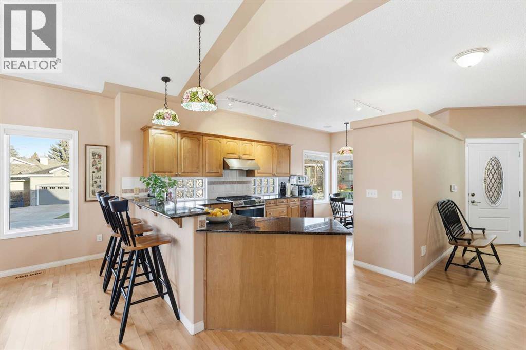 Welcome to this beautifully maintained and thoughtfully designed home offering over 2,600 developed square feet of comfortable, accessible living space. Designed with convenience and ease of mobility in mind, this home is perfect for buyers who value quality, functionality and independence. The best part - landscaping and snow removal is taken care of for $130 per month ($1560 paid yearly) as part of the Legacy Ridge HOA and the home is situated just steps to the scenic pathway system overlooking the Bow River. Step inside to find refinished hardwood floors and a warm, open atmosphere. The main floor features an office (formerly a bedroom), a convenient half bath and a large primary bedroom with an customized ensuite as well as a private patio offering a peaceful retreat. The bright kitchen is equipped with granite countertops, a dual fuel gas/electric stove, and a built-in pantry with pullout drawers for easy organization. The cozy living area offers a gas fireplace, creating an inviting space to relax or entertain guests. Accessibility and comfort are at the heart of this home. Thoughtful details such as swing-clear hinges for wider doorways, a walk-in tub, and built-in storage make daily living effortless. Enjoy full mobility throughout the property with the mobility elevator in the garage providing access to the main floor, and a second mobility elevator leading to the backyard, allowing you to enjoy every part of your home with ease both indoors and out. The lower level adds additional versatility with two additional bedrooms, a three-piece bathroom, another large family room with a second gas fireplace ideal for guests or visiting family. Additional features include: a tankless hot water system, high-efficiency furnace, air conditioning, aluminum roof installed in 2017, recently replaced doors and windows, and a water softener. The oversized double garage with an elevator, built-in speakers, and a charming gazebo in the backyard add both practicality and enjoyment. This exceptional property combines thoughtful design and true accessibility — offering the perfect balance of comfort and independence for those ready to simplify without compromise.Situated within the sought-after community of McKenzie Lake, you’ll enjoy access to an exceptional lifestyle with amenities that go beyond the home itself. Residents here benefit from the private 43-acre lake and 18-acre park, offering summer activities like swimming, boating, paddle-boarding and fishing, and in colder months transformed into a winter wonderland with illuminated skating rinks and ice trails. The community association provides tennis and pickleball courts, beach volleyball, playgrounds and pathways. Don't miss this rare opportunity to live in Legacy Ridge of McKenzie Lake. (id:53676)