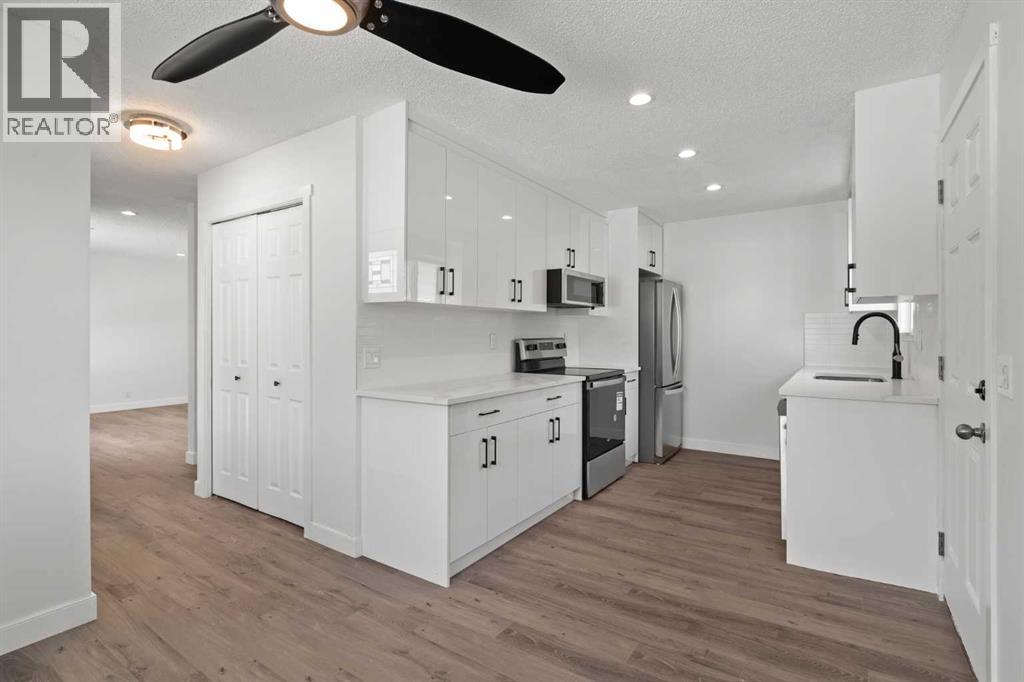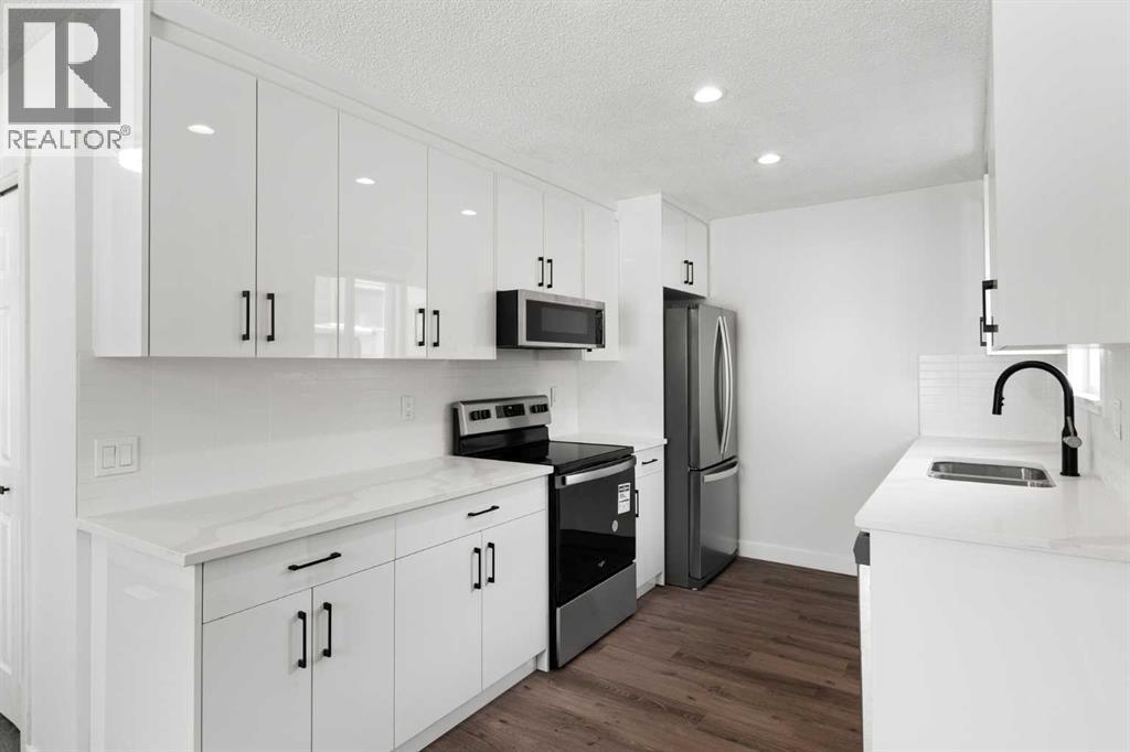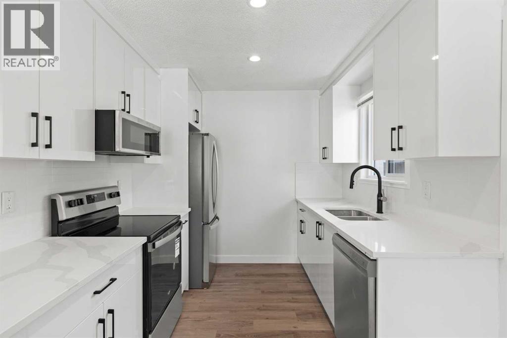 Renovated Bungalow Facing a Park – BRAND NEW Detached Double Garage Included. Location, lifestyle, and value come together in this wonderfully RENOVATED 4-bedroom, 2-bathroom bungalow, ideally located in the heart of Abbeydale - directly across from a little PARK & PLAYGROUND & tucked into a quiet, family-friendly street. Whether you're searching for your first home or a move-up property with room to grow, this thoughtfully maintained home checks all the boxes. Sitting on a generous lot with a sunlit Northeast front and Southwest back exposure, this property welcomes you with CHARMING curb appeal, a tidy yard, and front VIEWS of the open park - providing a daily dose of nature right outside your door. Step inside to discover a BRIGHT & beautifully designed main floor, where recent renovations & quality updates create a warm and STYLISH living environment. Luxury wide-plank vinyl flooring flows seamlessly throughout main living and dining area, setting the stage for easy family living and effortless entertaining. Large windows flood the space with natural light, giving the home an airy, inviting feel from the moment you arrive. At the heart of the home is a fully renovated, MODERN kitchen that truly delivers on both form and function. Crisp white cabinetry, premium quartz countertops, a classic subway tile backsplash, and quality stainless steel appliances make this kitchen a DREAM for home chefs and design lovers alike. Whether you're whipping up weeknight dinners or hosting holiday meals, this space is equipped to handle it all with ease and ELEGANCE. The main level offers three generously sized bedrooms, including a comfortable primary retreat with a large closet & window overlooking the backyard. Each bedroom has been well maintained, offering flexibility for families, guests, or a dedicated home office. The main bathroom has been COMPLETELY transformed into a spa-like retreat, featuring stunning designer tile, quartz countertops, a custom vanity with an undermou nt sink, and stylish plumbing fixtures - all thoughtfully chosen to ELEVATE your daily routines. Downstairs, the fully finished basement expands your living space with a massive family/recreation room, ideal for movie nights, games, formal dining or relaxing with loved ones. A spacious fourth bedroom, updated second bathroom, and dedicated laundry/storage/utility room add versatility & functionality to this lower level - perfect for multi-generational living. The backyard is fully landscaped and fenced, offering a QUIET and private retreat for play, gardening, or summer BBQs. A BRAND NEW Detached Double Garage & storage shed round out the property, ensuring convenience and plenty of space for all your lifestyle needs. Homes like this are RARELY available in such a PRIME LOCATION - just steps from parks, schools & everyday amenities, with quick access to 16th Avenue, Stoney Trail, and downtown Calgary. Don't miss out - CALL TODAY for a PRIVATE TOUR!! (id:53676)