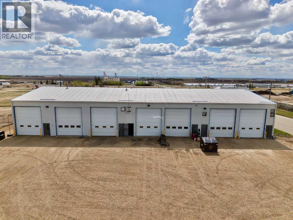 This 10,501 sq ft building features 2 double bay units and 3 single bay units. All 5 units have their own land title certificates. The two double bay units have 1 front and 2 rear 14ft x 16 ft overhead doors. The single bay units each have 1 rear 14 x 16 ft overhead door. All units have their own radiant heat, forced air furnace, hot water tank, 2 pc bathroom, office space and 4 have a mezzanine. Double bay units are 39'4" x 63'. The single bay units are 19'6" x 63'. The building has a pitched slope metal roof. The height at eave troughs is 18'3" and the ceiling height at peak is 23'8". There is currently 1 tenant in a double bay (Unit 5) with a two-year lease. There is also another tenant in a single bay (Unit 4) leasing monthly. The other double bay unit and 2 single bay units will be vacant upon sale. The well graveled yard is flat in the back and sloped in the front. The property is situated on the east side of 100 Street in Fairview and in very close to Alberta Highway 2. This building is very able to support many types of businesses. You can view floorplan under supplement documents. If you are looking for a business for your own use or as an investment property, this is a must see. (id:53676)