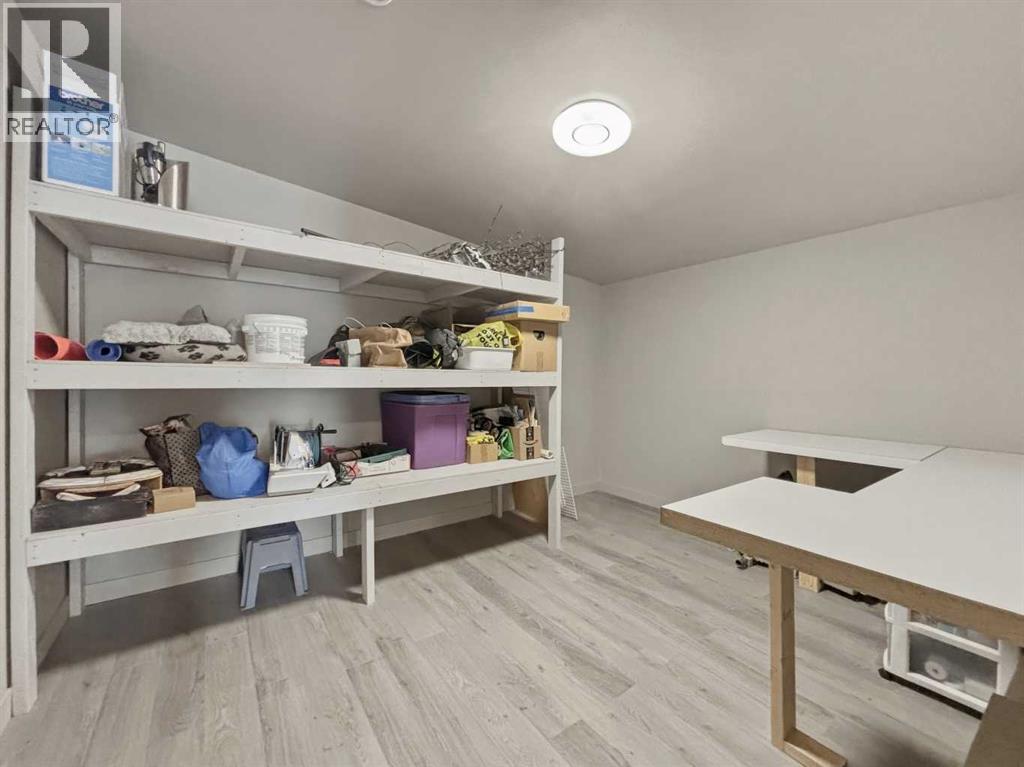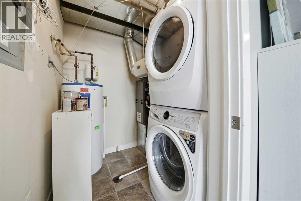 This exquisite, fully renovated top floor corner unit condo is a showstopper! From the high ceilings to the stunning quartz counter tops, fluted feature walls, chandelier lighting, and custom window coverings throughout, this suite has it all. The bright and open floor plan boast a dining area, kitchen with quartz countertops, island w/ eating bar, two-tone cabinets, wall pantry, and stainless appliances. The living room boasts a custom feature wall w/ electric fireplace and access to the east facing balcony to enjoy your morning coffee. The primary bedroom features built-in headboard and a good size walk-in closet. A second bedroom, 3 pc bathroom, and in-suite washer & dryer complete this stunning condo. This unit also comes with 1 assigned parking stall and an additional storage room. Located in the heart of downtown Lacombe, just steps from local amenities and shopping, this is low-maintenance living at its finest. (id:53676)